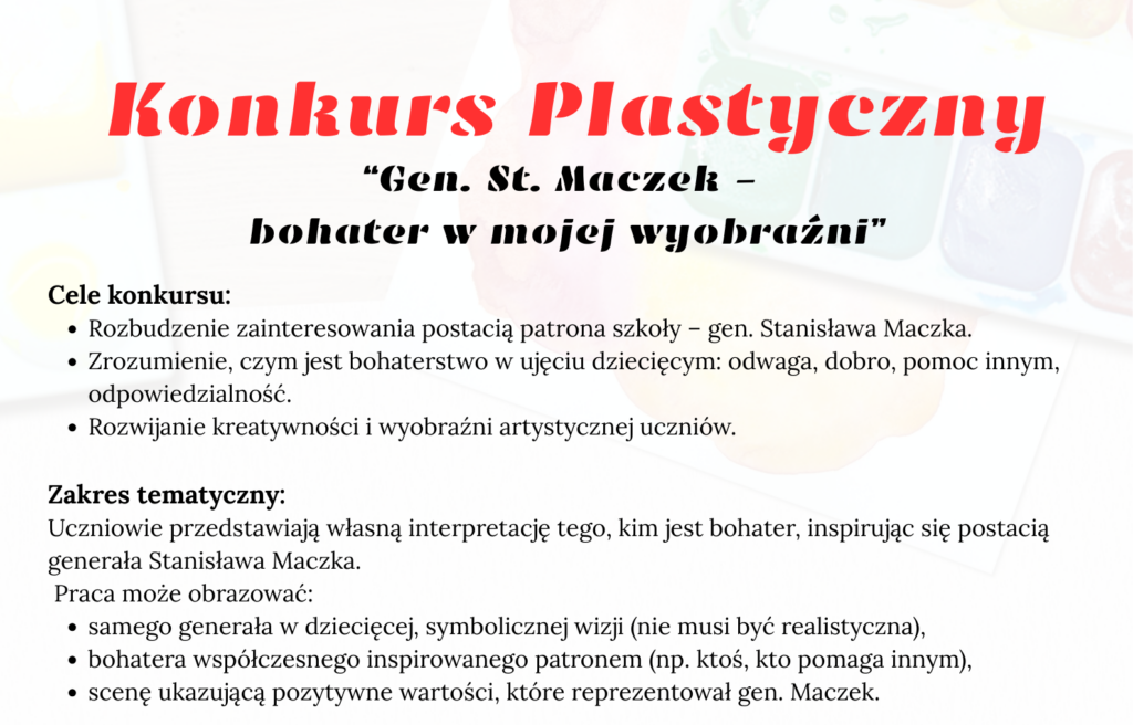 Konkurs Plastyczny z okazji Dnia Patrona pt. „Gen. St. Maczek – bohater w naszej wyobraźni” dla uczniów kl. I-III