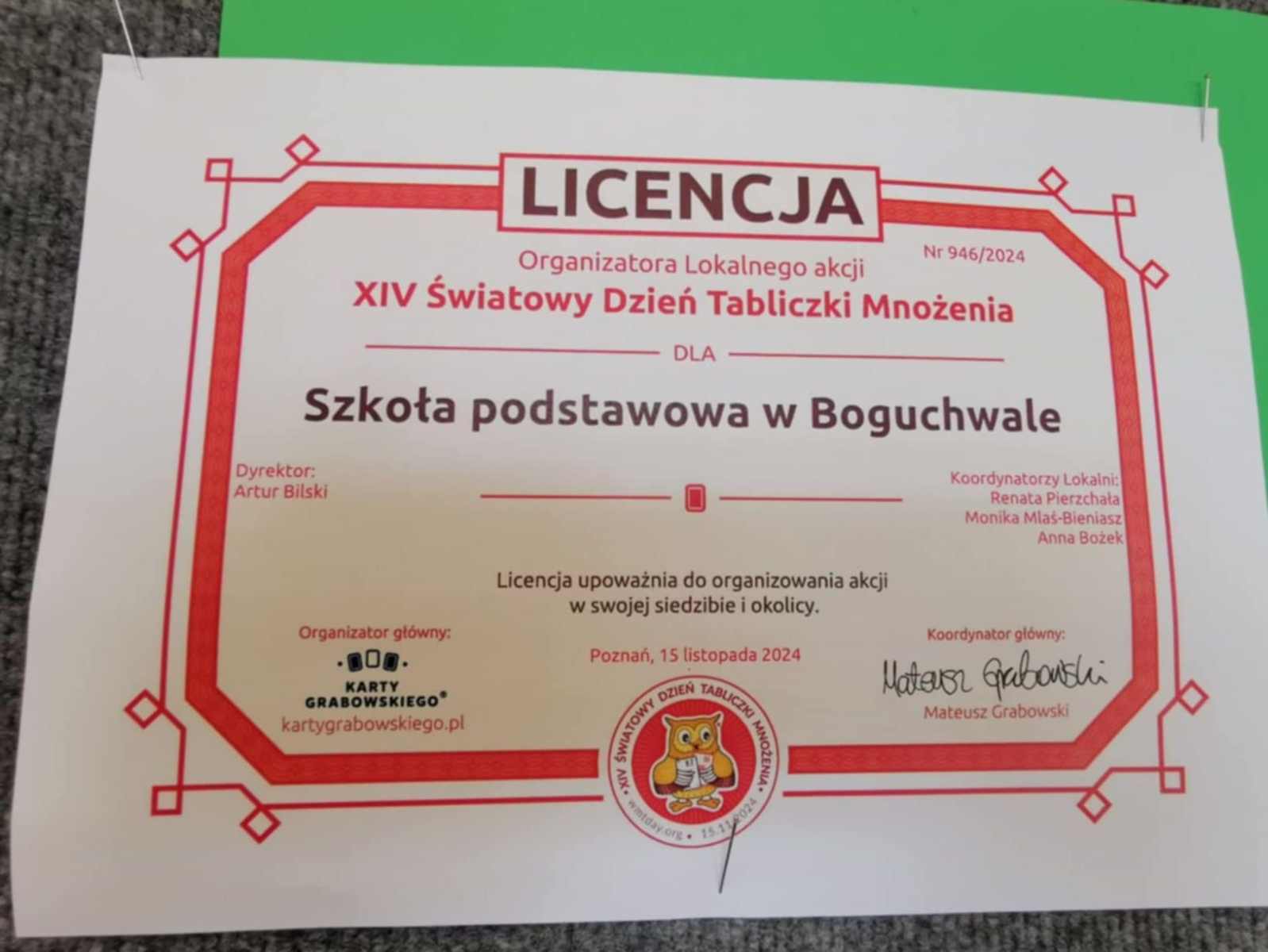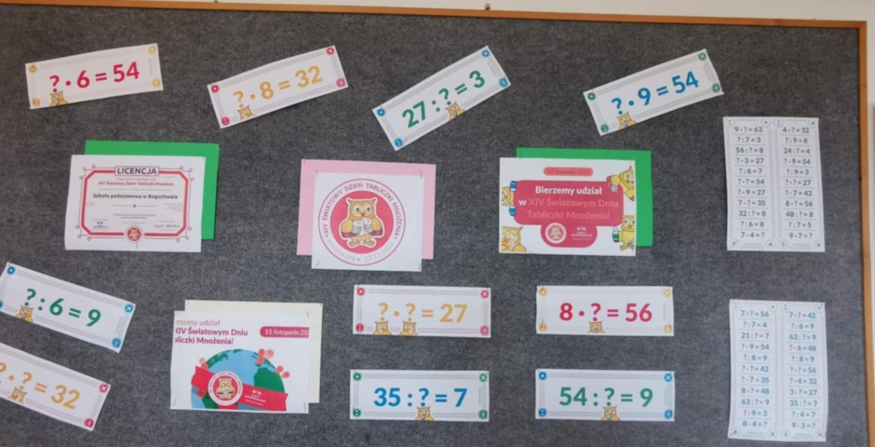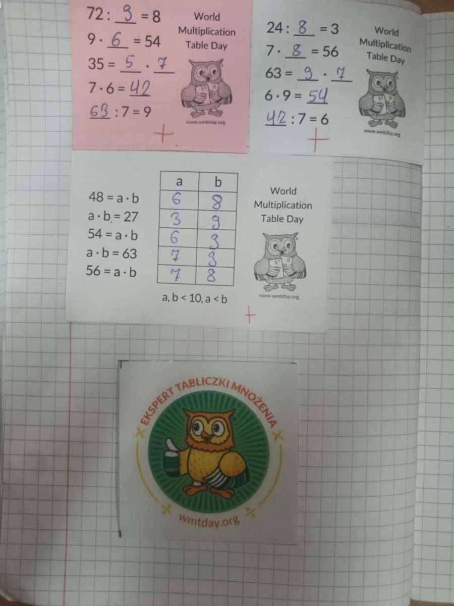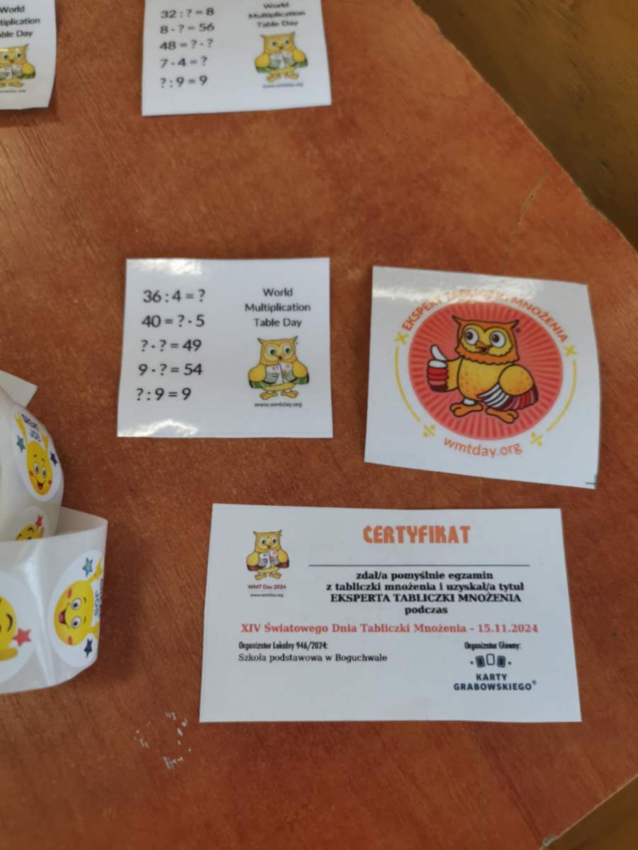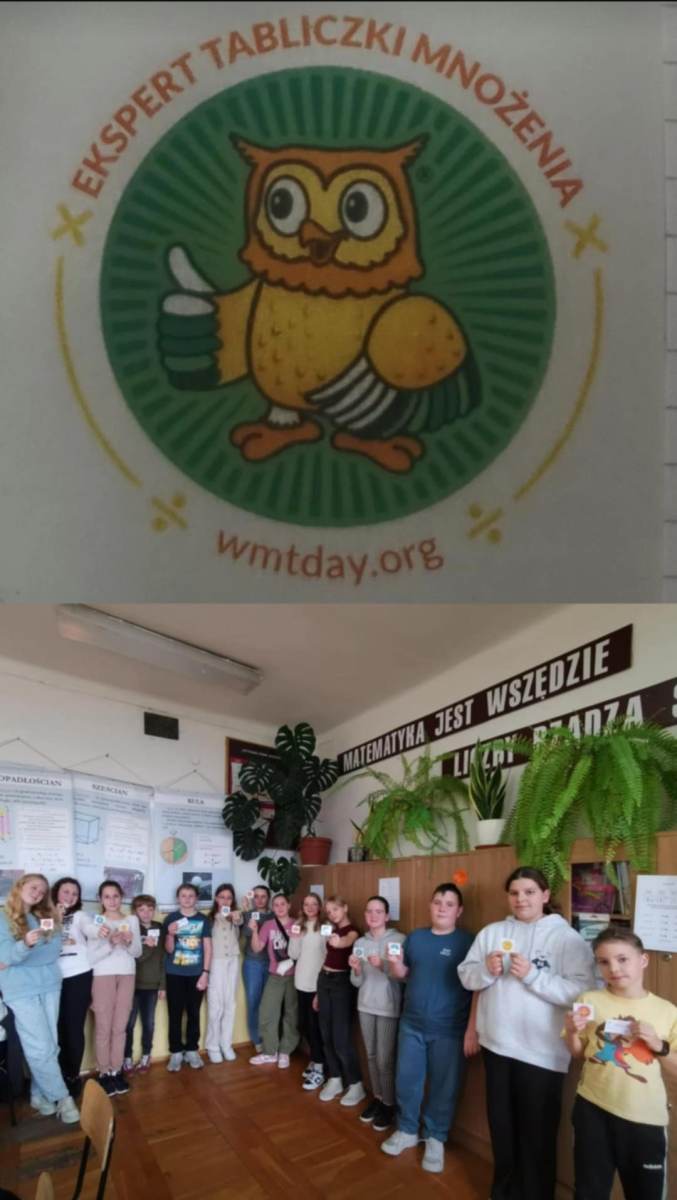 Na 15 listopada w tym roku przypadł XIV Światowy Dzień Tabliczki Mnożenia. W naszej szkole też świętowaliśmy ten dzień, aby zachęcić do przypomnienia sobie tabliczki mnożenia w przyjemny i niecodzienny sposób. Uczniowie klas IV -VIII rozwiązywali quizy matematyczne i rywalizowali aby uzyskać tytuł „Eksperta Tabliczki Mnożenia” i otrzymać pamiątkową naklejkę. Zmagania z tabliczką mnożenia w formie gier, wykreślanek odbywały się na lekcjach matematyki. WMT Day to świetna inicjatywa szerząca znajomość tabliczki mnożenia i przy okazji fantastyczna zabawa.