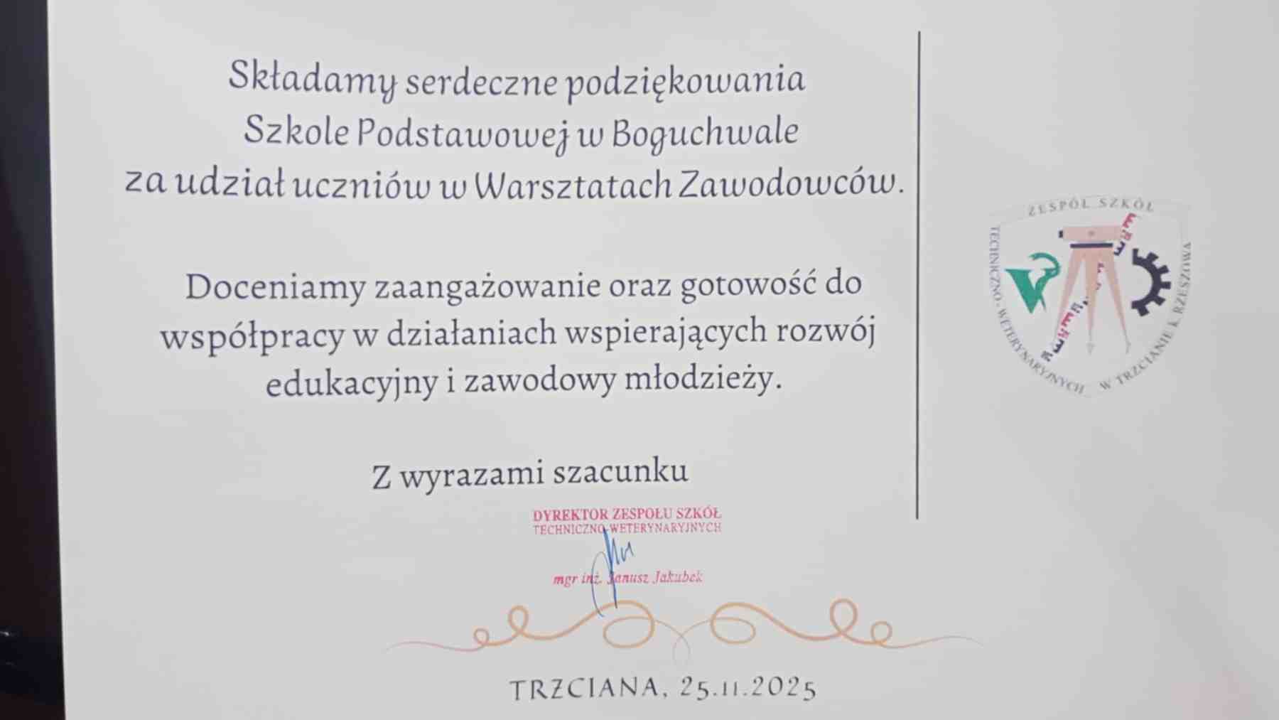 W ramach działań promujących kształcenie techniczne cztery uczennice klas VIII wzięły udział w warsztatach fryzjerskich zorganizowanych w Zespole Szkół Techniczno-Weterynaryjnych w Trzcianie. Zajęcia miały na celu przybliżenie młodzieży specyfiki pracy fryzjera oraz zaprezentowanie możliwości, jakie daje nauka w technikum o profilu usługowym.