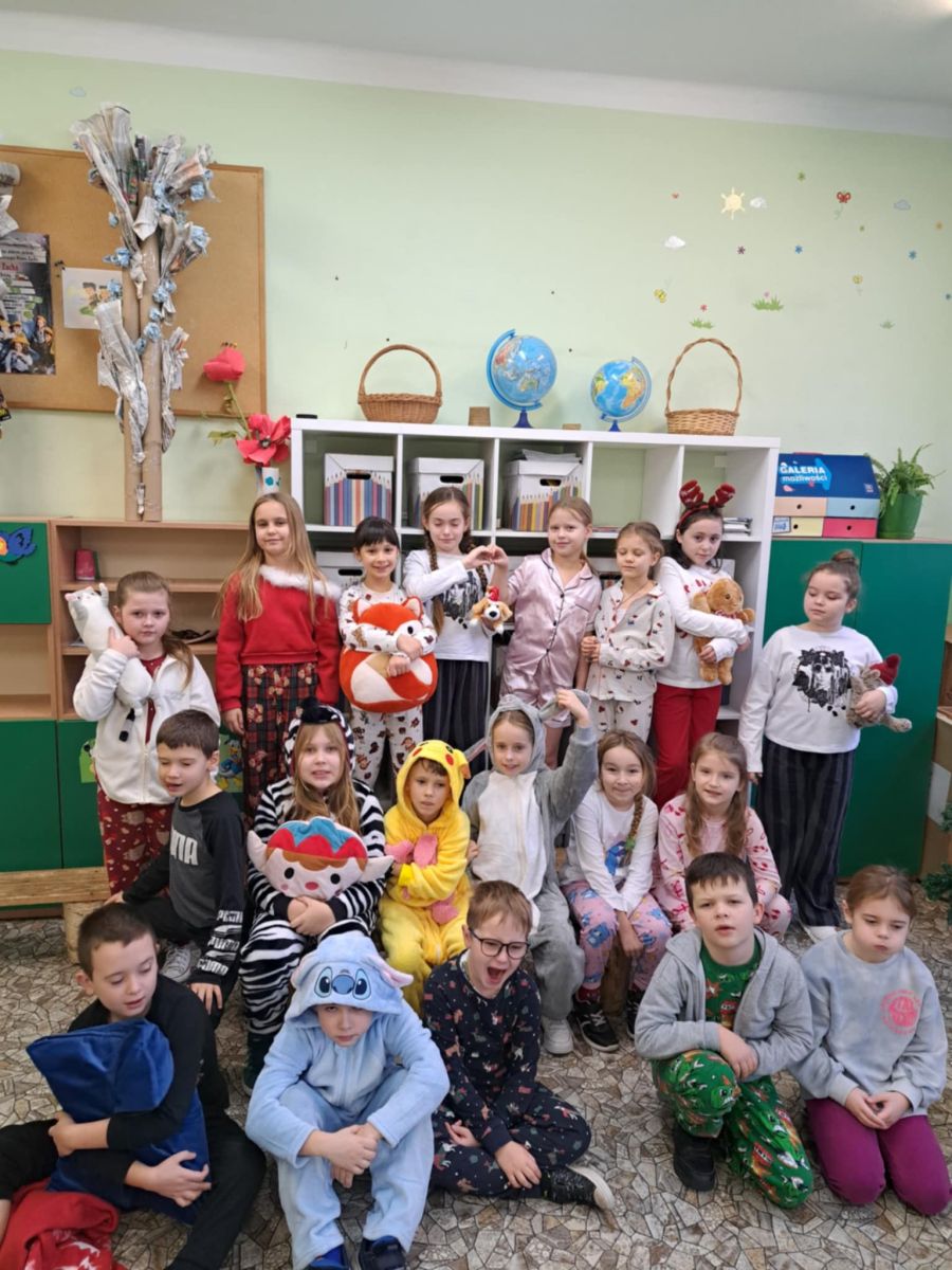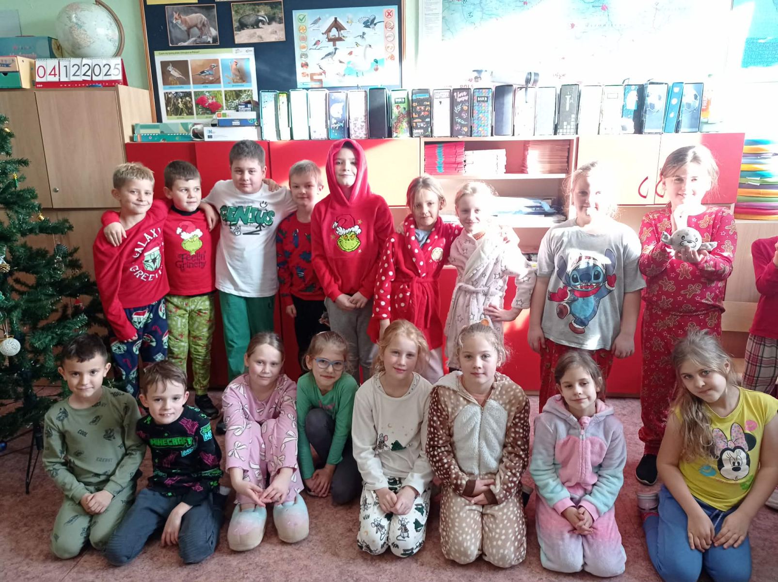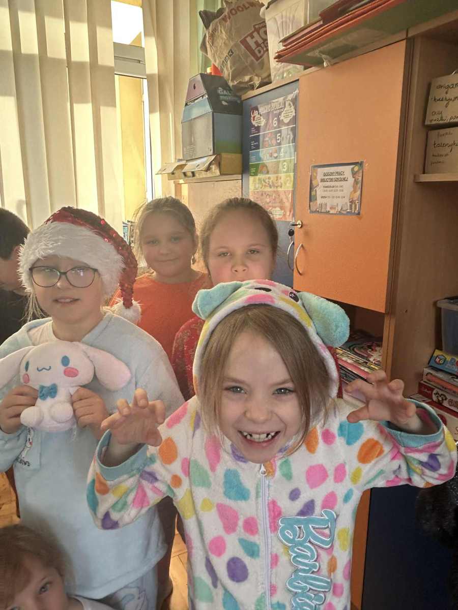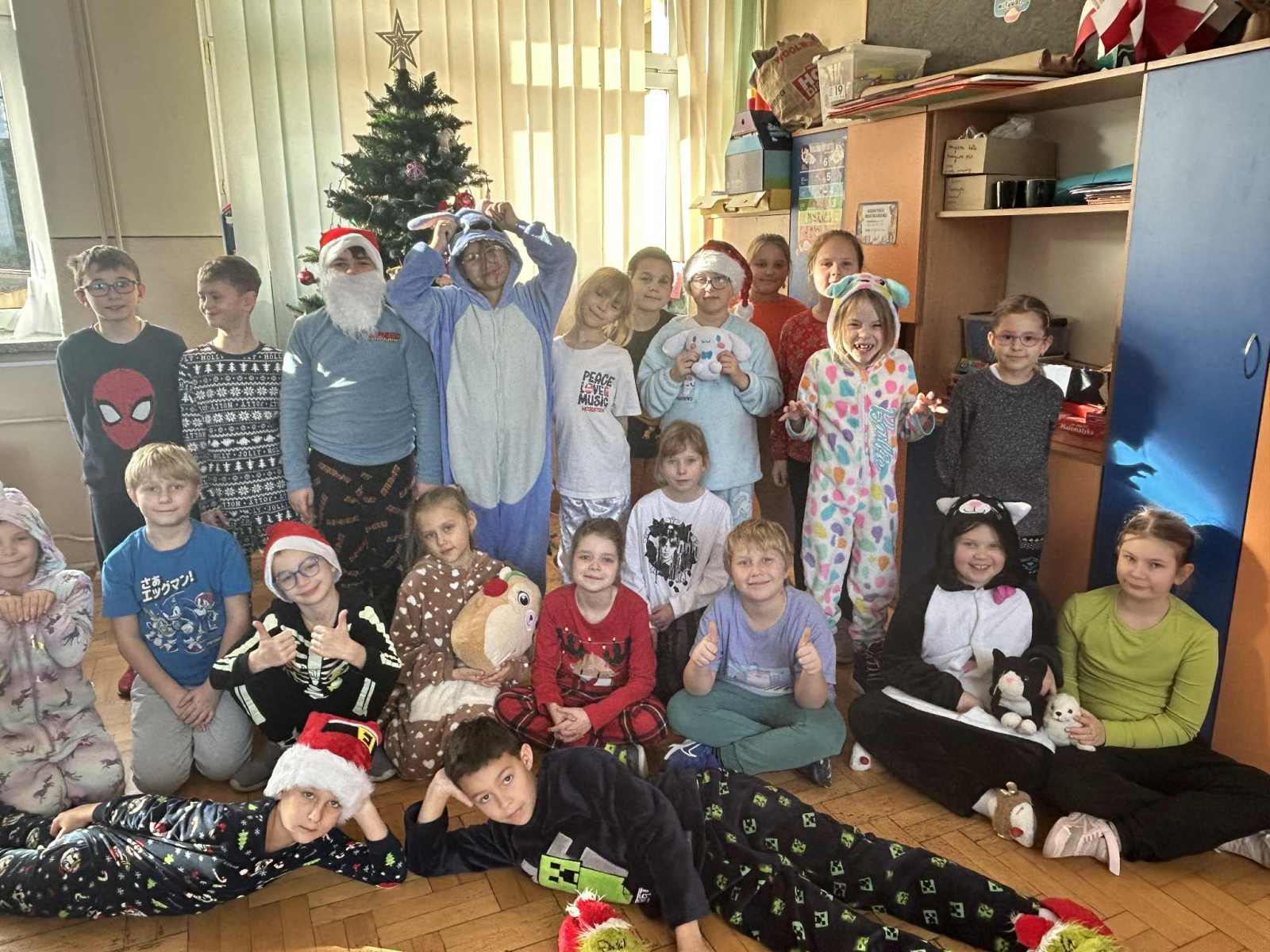 Dnia 5.12.2025 r. Samorząd Uczniowski zainicjował w naszej szkole Dzień Piżamy. Tego dnia korytarze i sale lekcyjne wypełniły się kolorowymi piżamami, szlafrokami, opaskami na oczy oraz pluszakami. Uczniowie chętnie włączyli się w akcję, prezentując swoje pomysłowe i niezwykle różnorodne stroje.
