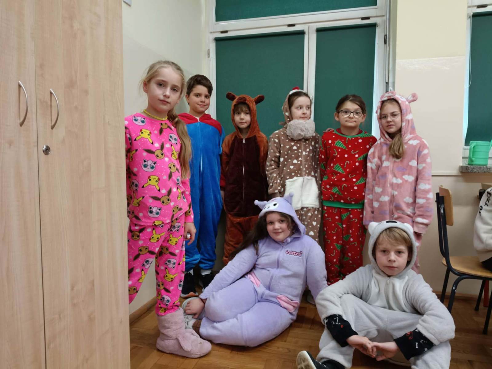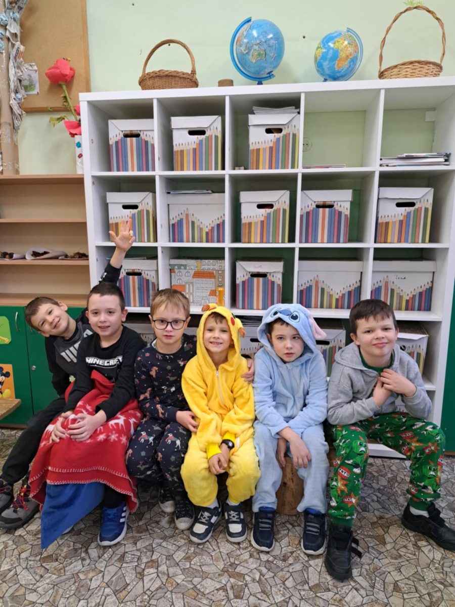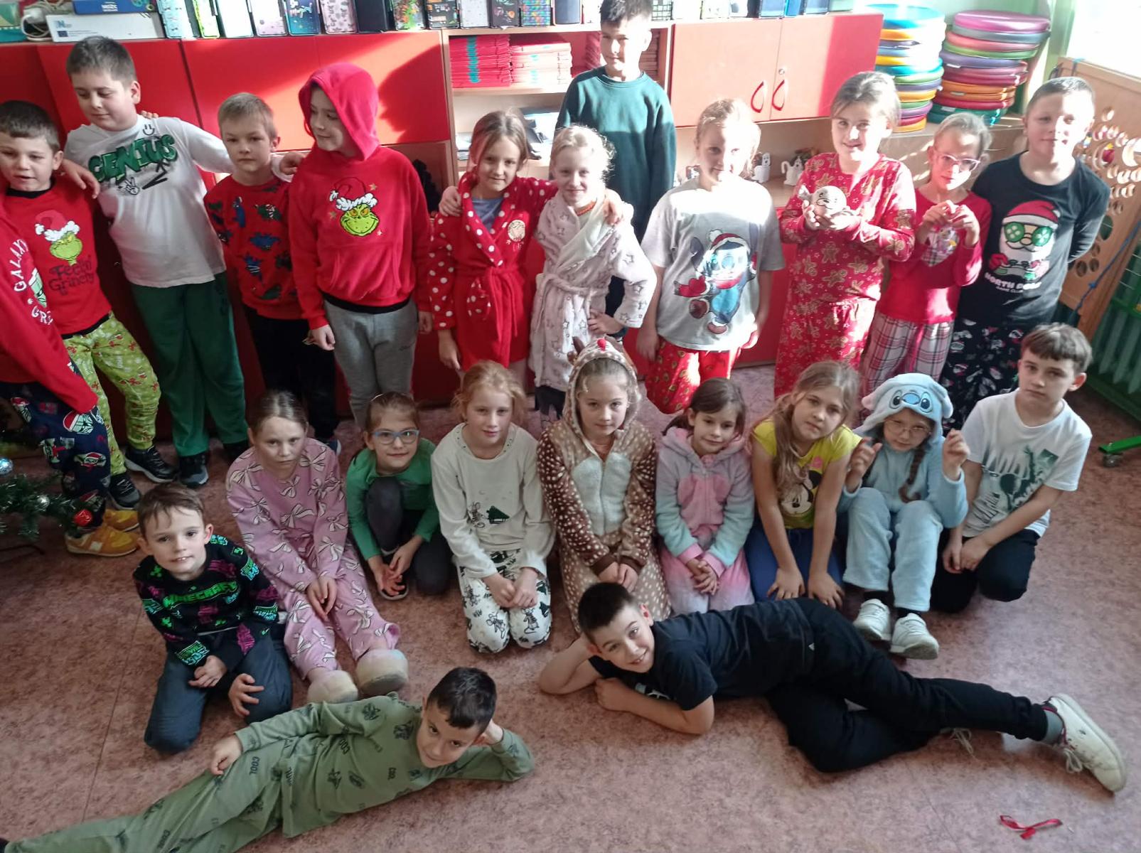 Dnia 5.12.2025 r. Samorząd Uczniowski zainicjował w naszej szkole Dzień Piżamy. Tego dnia korytarze i sale lekcyjne wypełniły się kolorowymi piżamami, szlafrokami, opaskami na oczy oraz pluszakami. Uczniowie chętnie włączyli się w akcję, prezentując swoje pomysłowe i niezwykle różnorodne stroje.