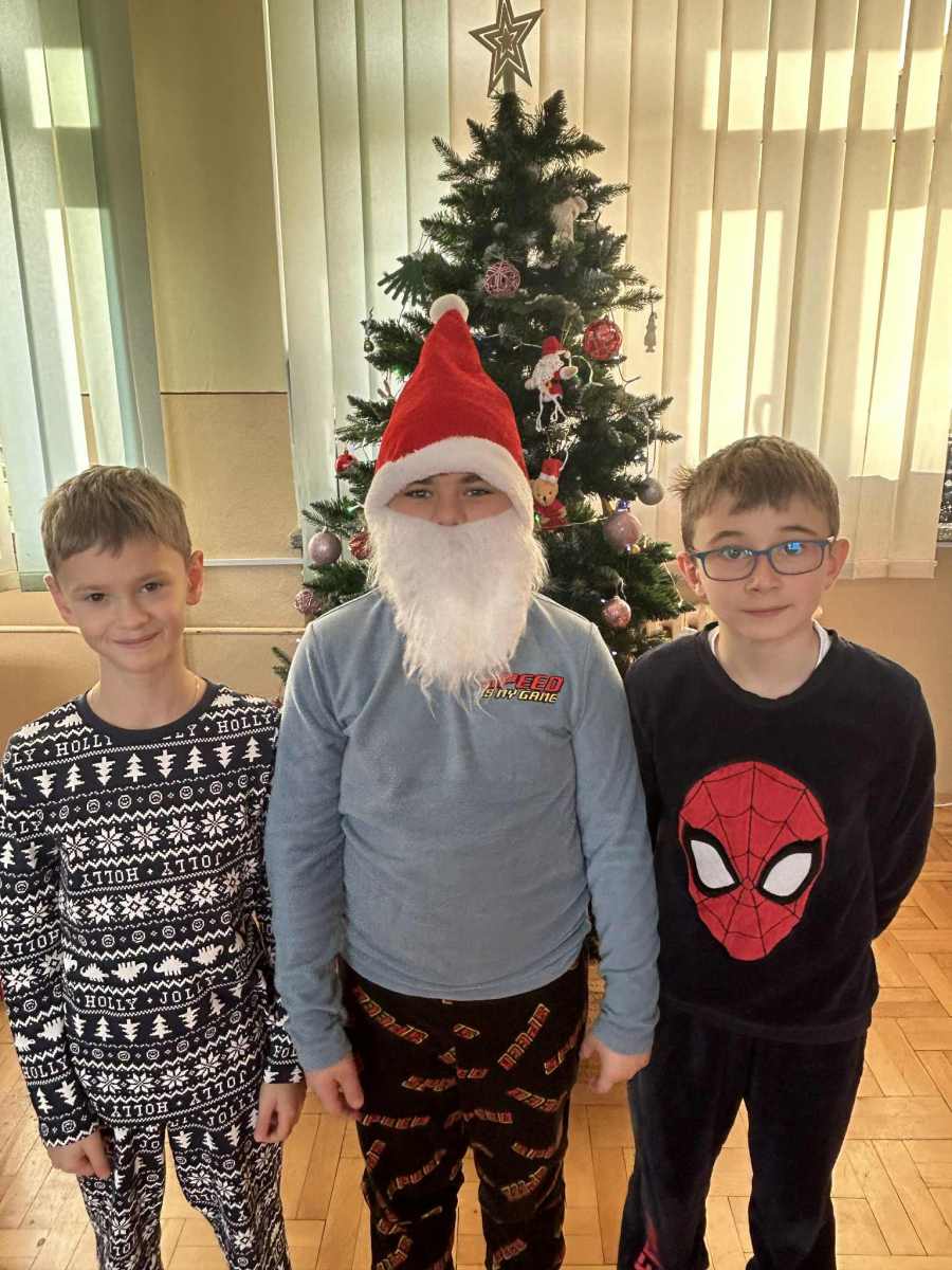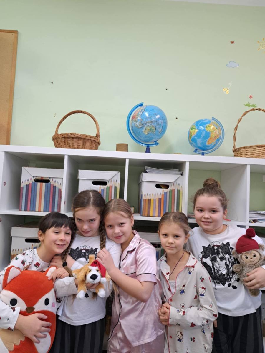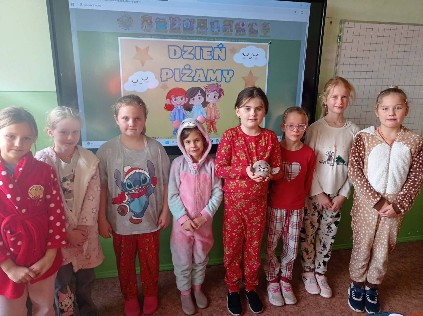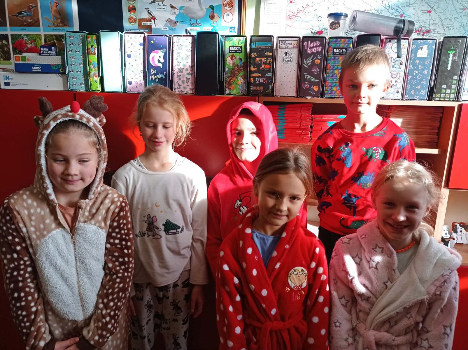 Dnia 5.12.2025 r. Samorząd Uczniowski zainicjował w naszej szkole Dzień Piżamy. Tego dnia korytarze i sale lekcyjne wypełniły się kolorowymi piżamami, szlafrokami, opaskami na oczy oraz pluszakami. Uczniowie chętnie włączyli się w akcję, prezentując swoje pomysłowe i niezwykle różnorodne stroje.