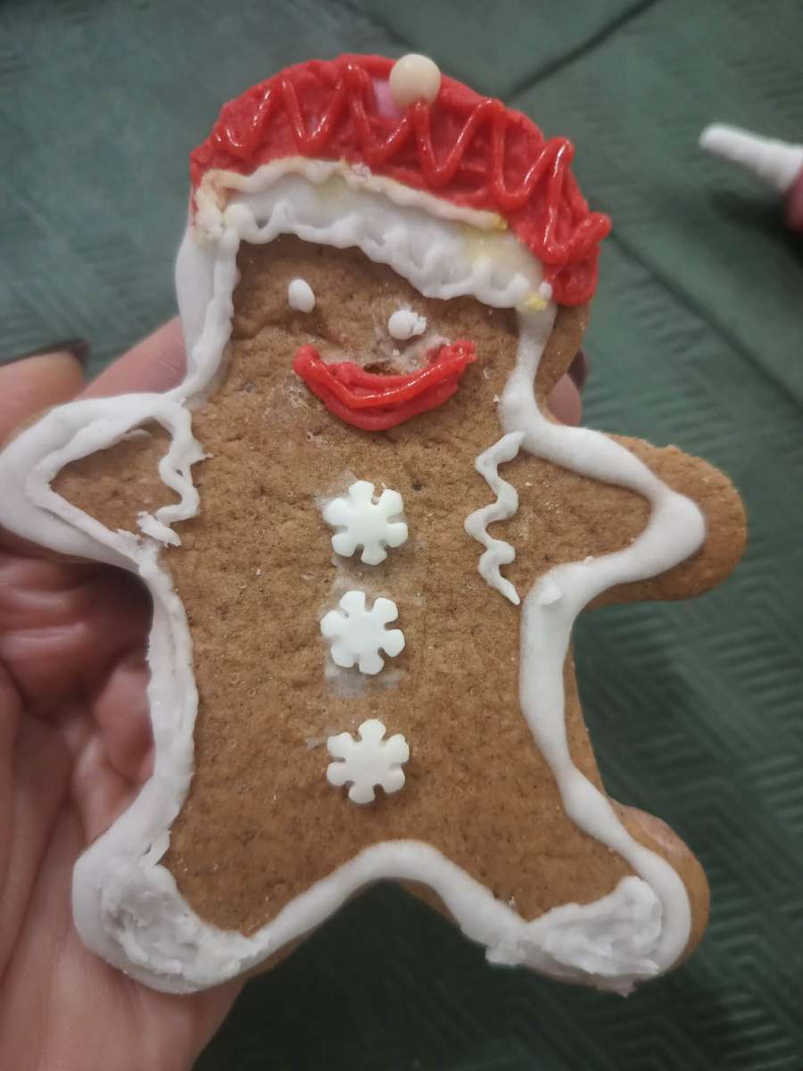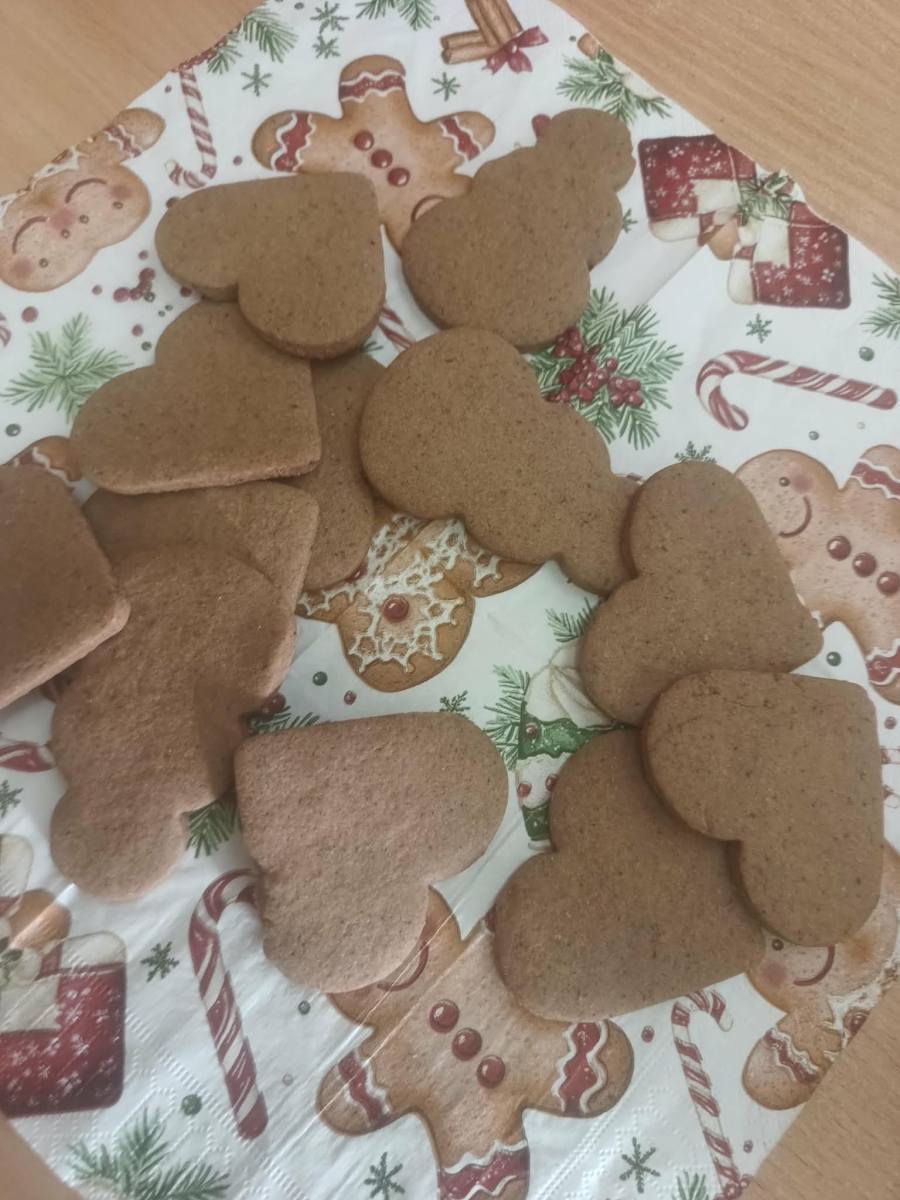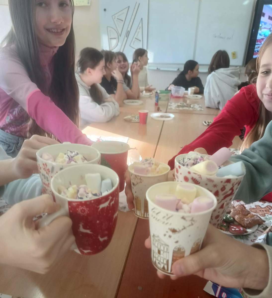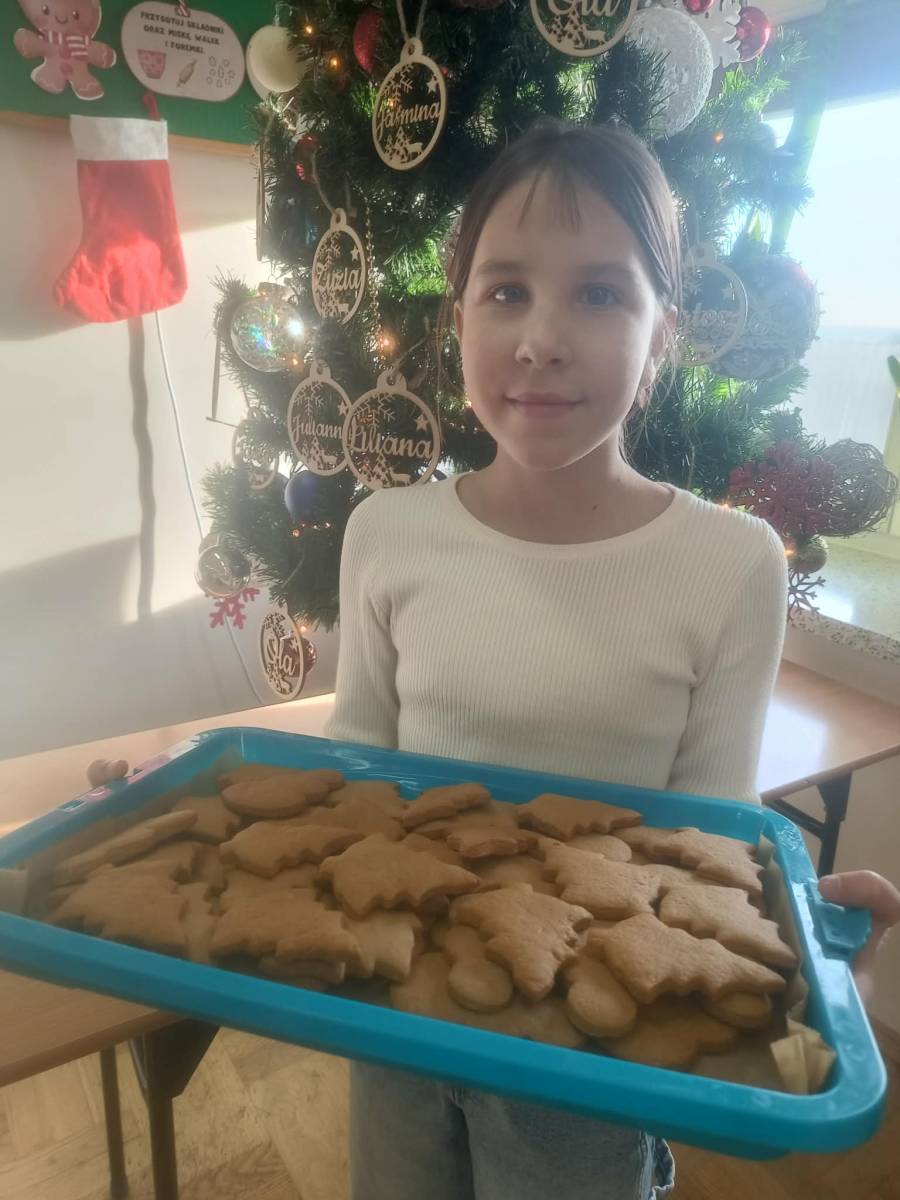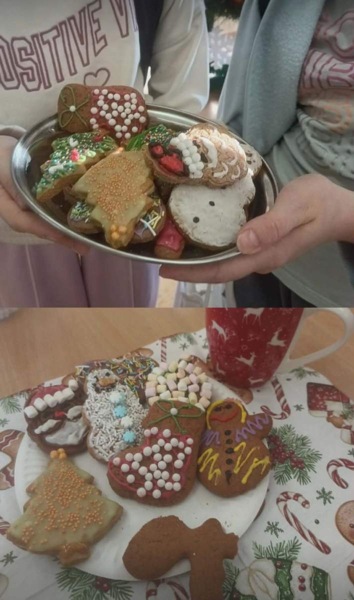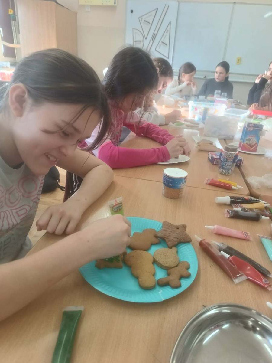 W ramach świątecznych przygotowań klasa 5a zamieniła się w… cukiernię pełną artystów i smakoszy w jednym. Uczniowie z wielkim zaangażowaniem dekorowali pierniczki, które wcześniej upieczono w domowych piekarnikach. Na stołach królował lukier w ilościach hurtowych, posypki we wszystkich kolorach tęczy oraz fantazja, która zdecydowanie nie znała granic. Powstawały pierniki kolorowe, uśmiechnięte, abstrakcyjne… Jedno było pewne – każdy piernik był absolutnie wyjątkowy. W klasie zapanował prawdziwie świąteczny klimat, choć momentami przypominał on pole bitwy z lukrem na rękach, ławkach i… nosach. Uczniowie pomagali sobie nawzajem, dzielili się pomysłami i przede wszystkim świetnie się bawili. Po zakończeniu prac artystycznych nadszedł najbardziej wyczekiwany moment – degustacja! Całość dopełnił kubeczek gorącej czekolady, który skutecznie rozgrzał atmosferę i brzuchy. Była to wyjątkowo udana, pełna śmiechu, ciepła i słodkości przedświąteczna godzina wychowawcza.