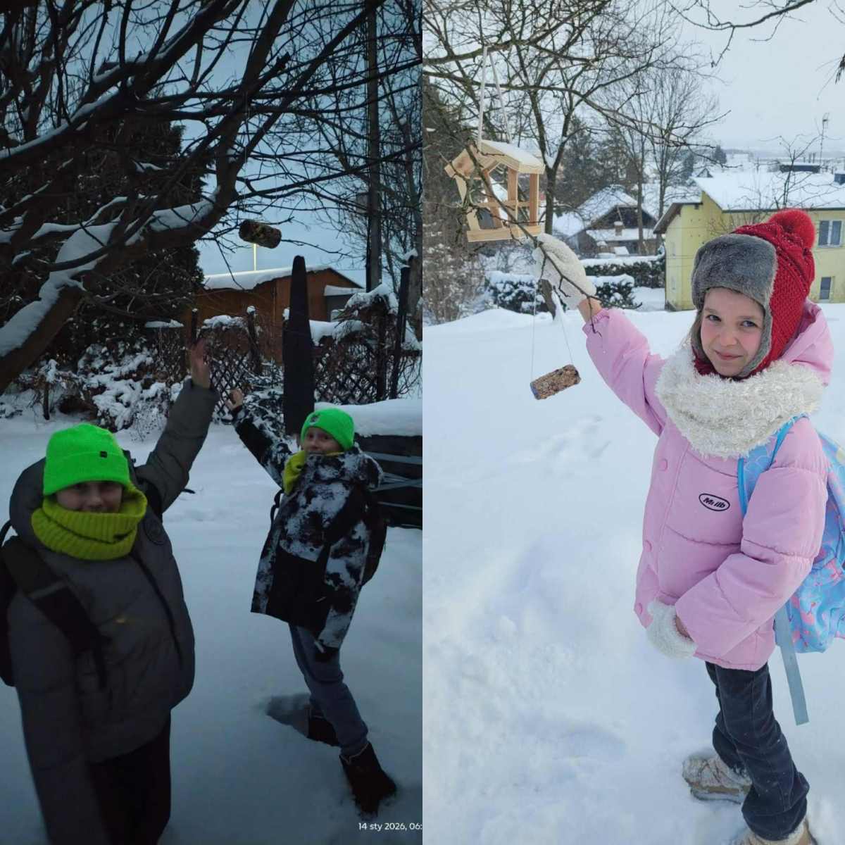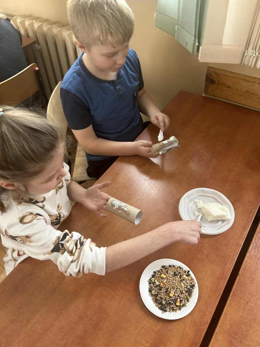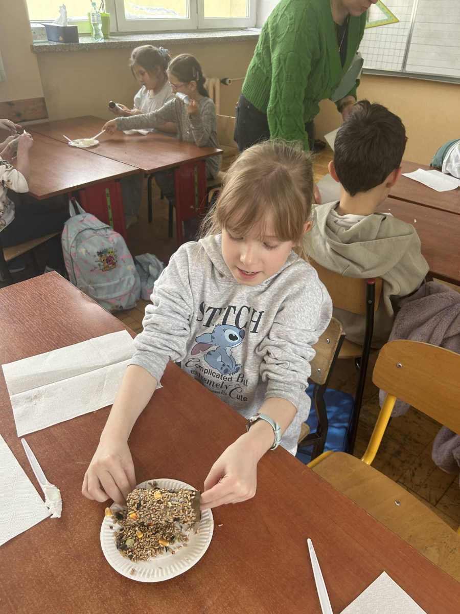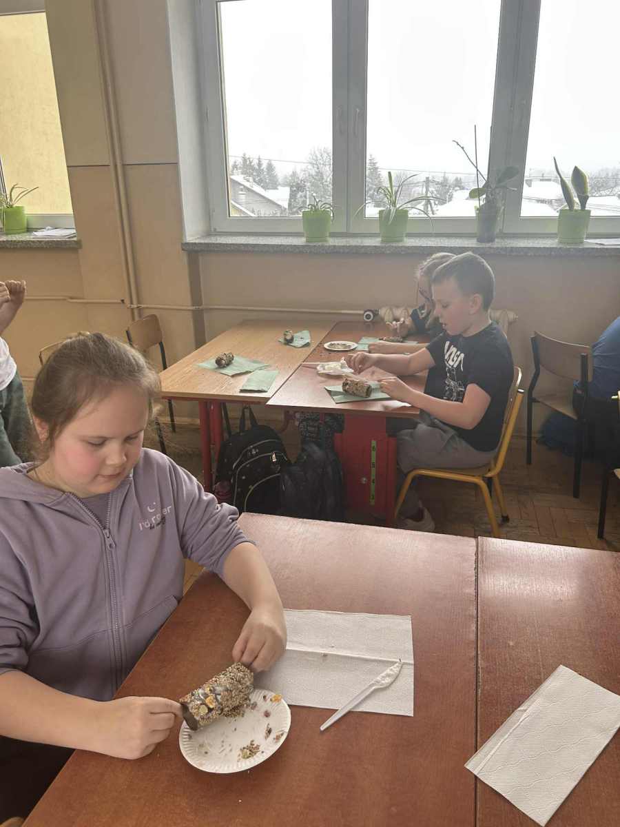 Zima to czas zabawy na śniegu, ale także moment, w którym warto pamiętać o dokarmianiu ptaków. Dlatego klasa II d, oprócz świetnej zabawy na śniegu, wykonała ekologiczne karmniki, aby pomóc ptaszkom przetrwać zimę.