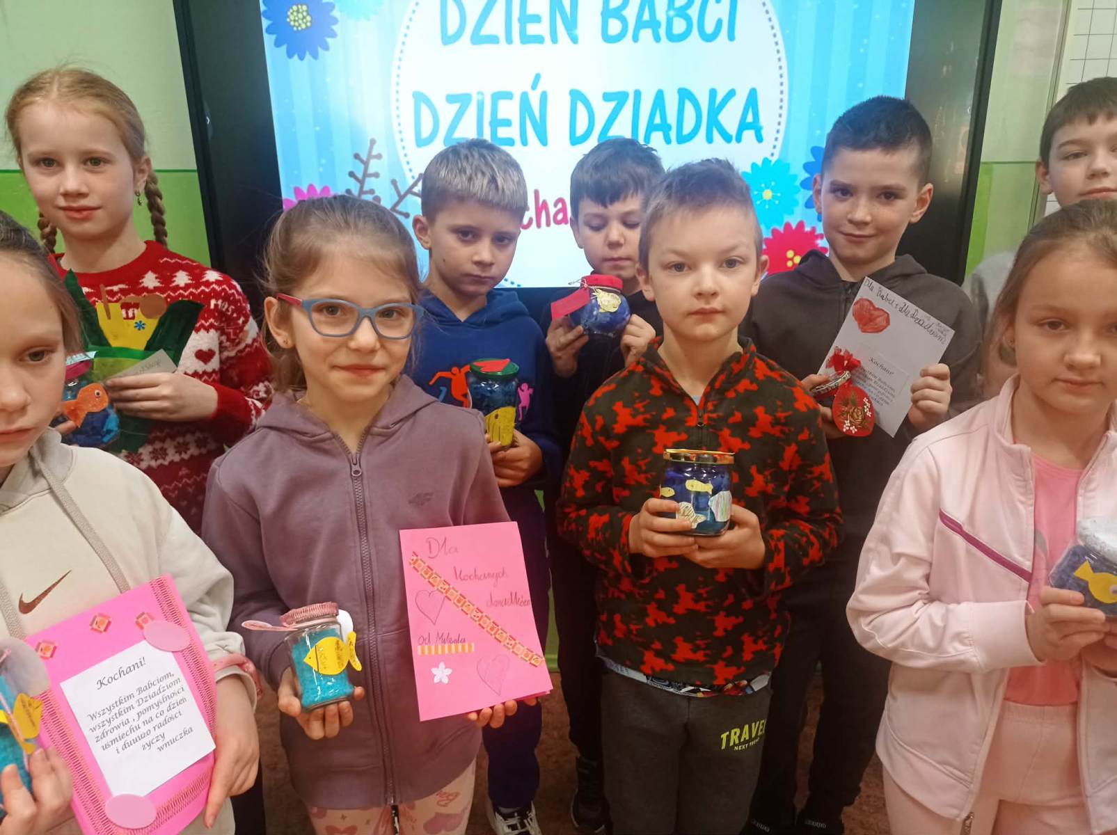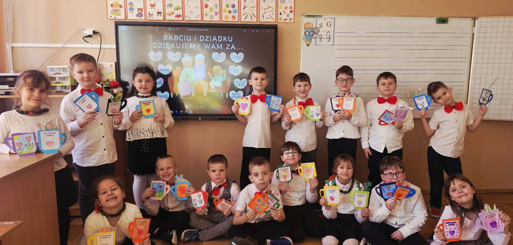 Wszystkim Babciom oraz Dziadziom wraz z laurkami, bukietami kwiatów i całuskami dedykujemy występ klas pierwszych.