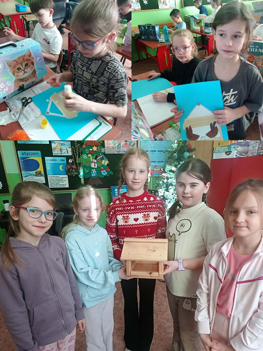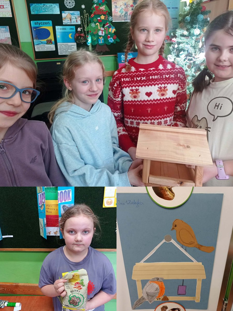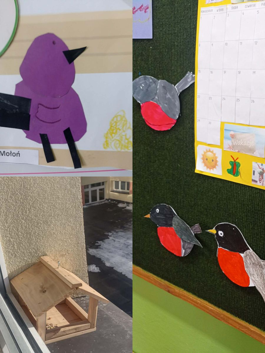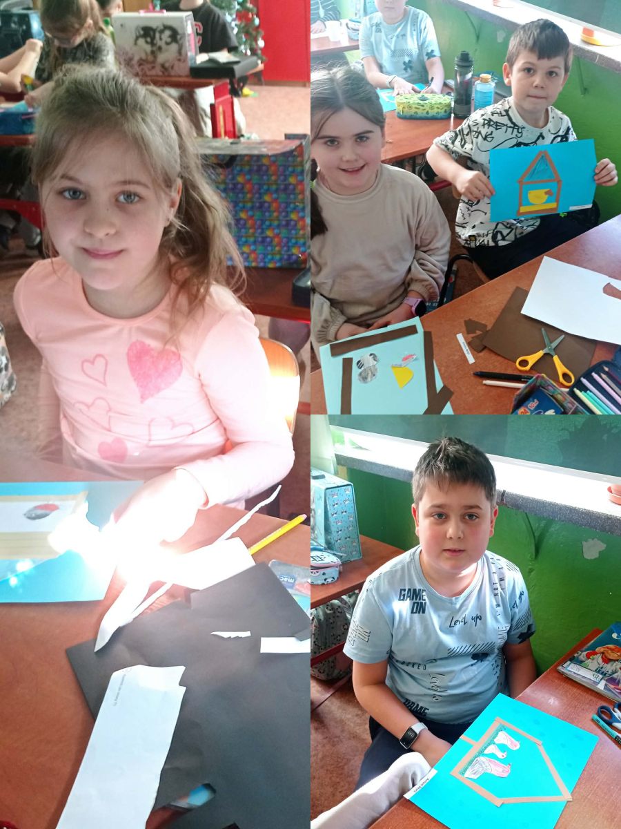 W ramach omawianego bloku tematycznego „Ptaki zimą”, uczniowie klasy 2b stworzyli lapbooki. Celem tego zadania było nie tylko zapoznanie się z ptakami zimującymi w Polsce, ale także utrwalenie zdobytej wiedzy w kreatywny sposób. Uczniowie zapoznali się z różnymi gatunkami zimującymi u nas ptaków, ich zwyczajami, sposobami przetrwania trudów mroźnej pory roku oraz ich rolą w ekosystemie. Uczestnicy zajęć przygotowali zdjęcia ptaków, napisali krótkie notatki na ich temat, wyszukiwali informacje w atlasach ptaków. Dzięki tej formie wspólnych działań nie tylko zapamiętali, które ptaki zostają w Polsce na zimę, ale również zdobyli informacje dotyczące ich charakterystyki, nawyków oraz warunków życia. Tworzenie lapbooka okazało się bardzo efektywną metodą pracy: uczniowie nie tylko zdobyli i utrwalili swoją wiedzę, ale również rozwinęli umiejętności kreatywne oraz manualne. Za oknem ustawiliśmy karmnik i zadbaliśmy o to, aby nie zabrakło w nim smakowitych ziarenek. Teraz będziemy mieli możliwość obserwowania ptaków przylatujących do „ptasiej stołówki”.