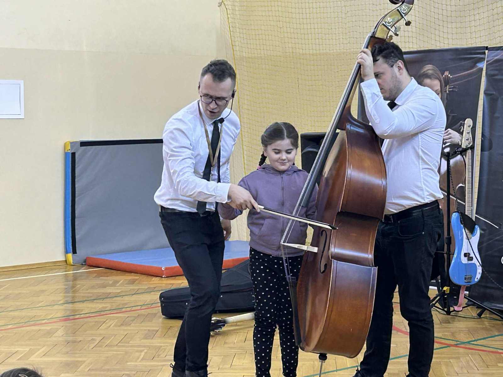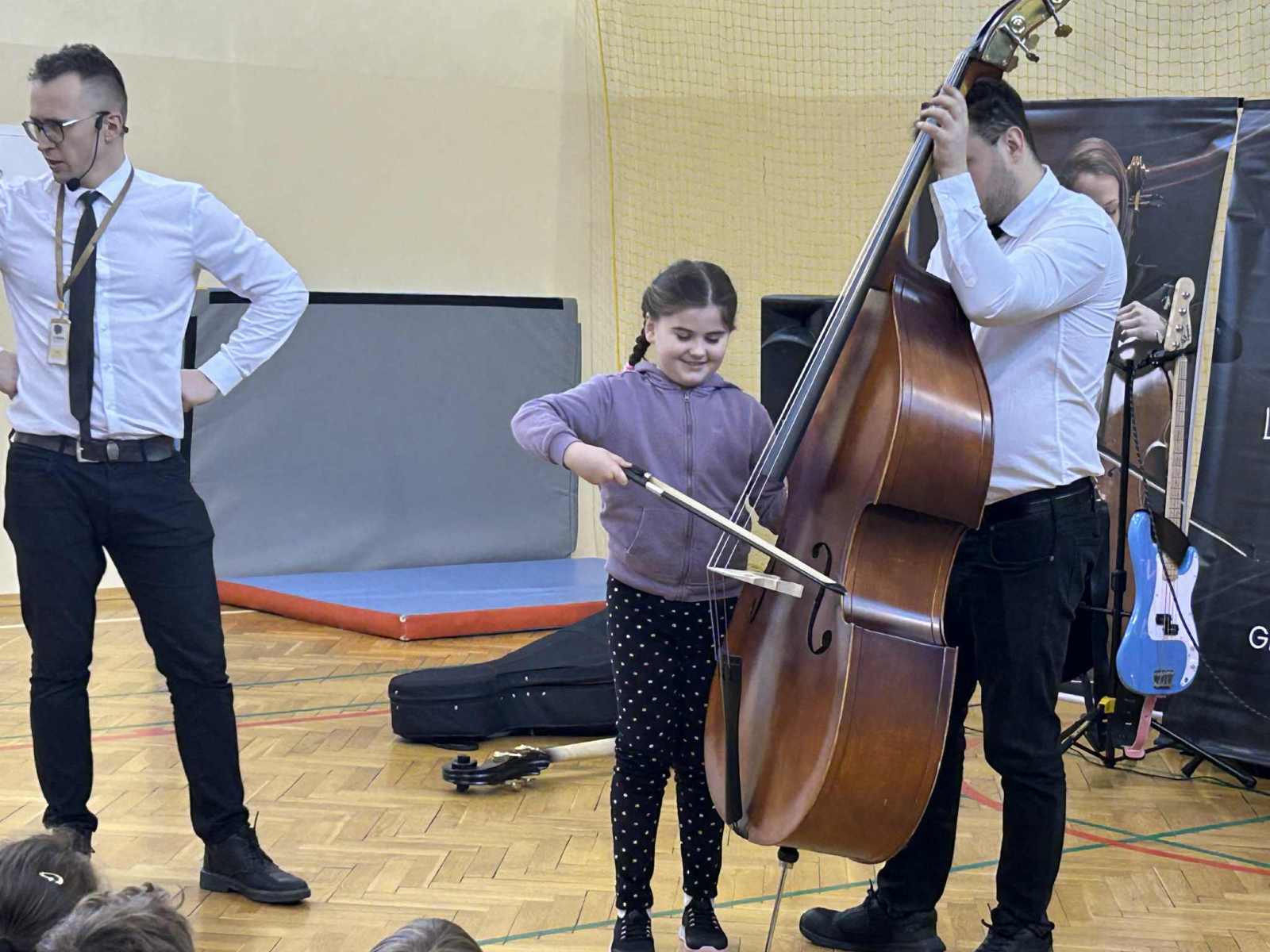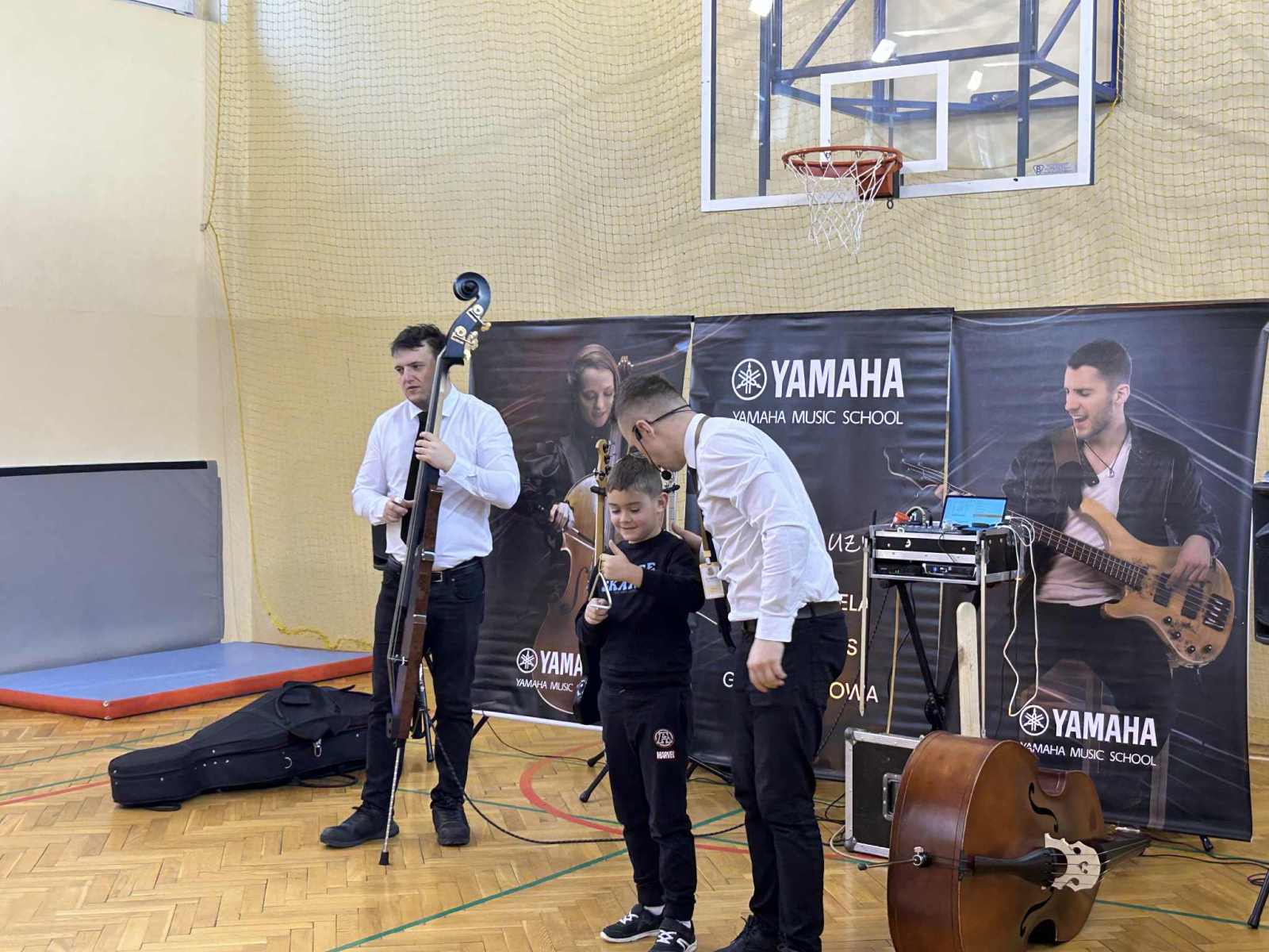 Dziś uczniowie klas 1–3 wzięli udział w zajęciach muzycznych prowadzonych przez szkołę muzyczną Yamaha. Tematem spotkania były instrumenty nisko brzmiące – m.in. kontrabas, gitary elektryczne, wiolonczela oraz głosy tenorowe i basowe.