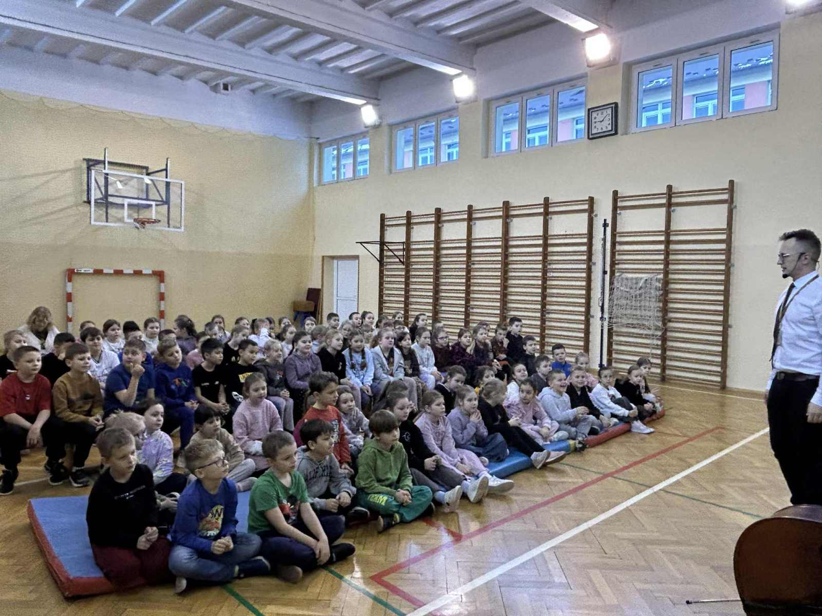 Prowadzący w ciekawy i przystępny sposób zaprezentowali budowę i wygląd instrumentów, opowiedzieli o ich charakterystycznym brzmieniu oraz zapoznali uczniów ze sposobami gry i śpiewu. Niskie dźwięki zostały obrazowo porównane do odgłosów słonia, co wzbudziło duże zainteresowanie i ułatwiło zapamiętanie omawianych treści. Zajęcia były wartościową i inspirującą muzyczną lekcją.