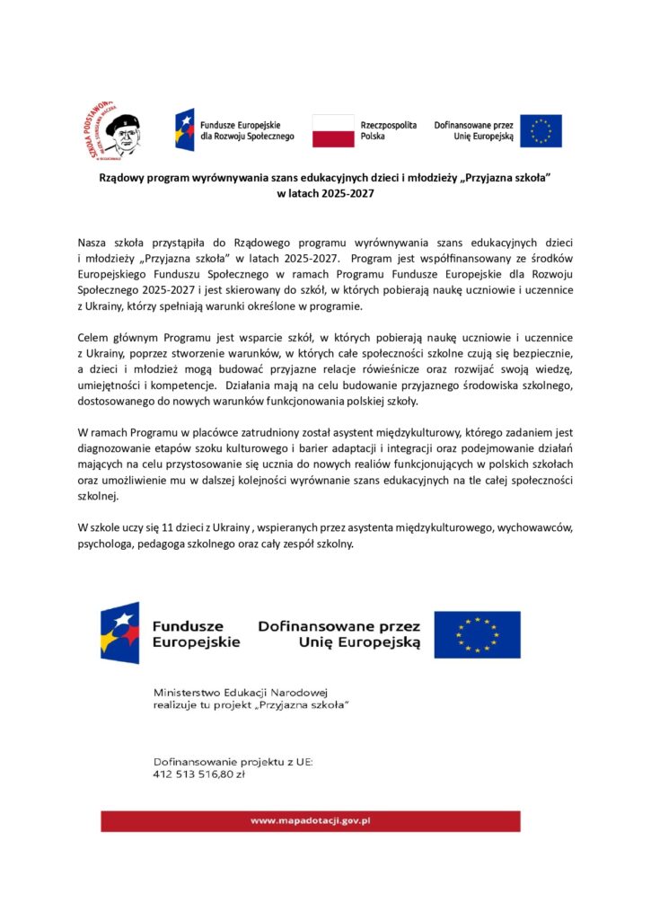 Rządowy program wyrównywania szans edukacyjnych dzieci i młodzieży „Przyjazna szkoła” w latach 2025-2027