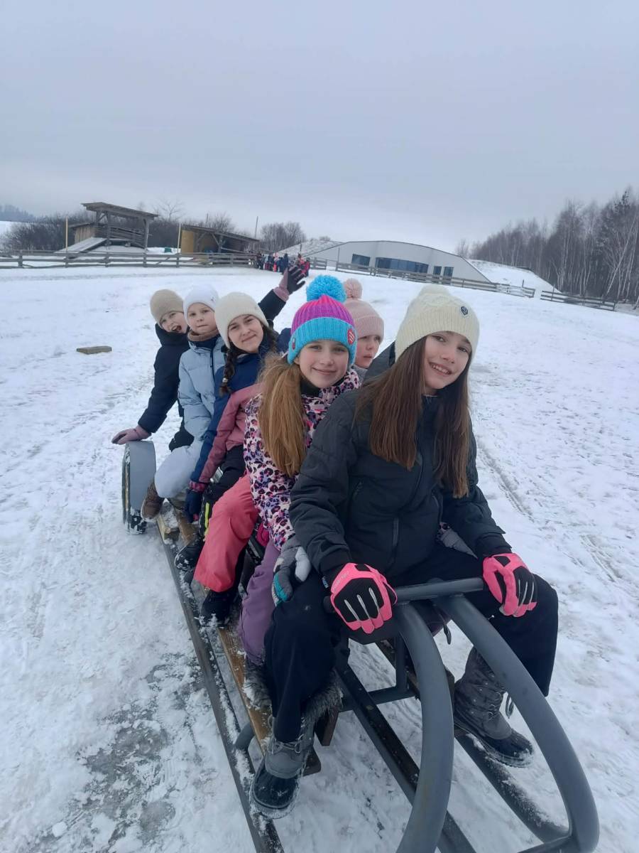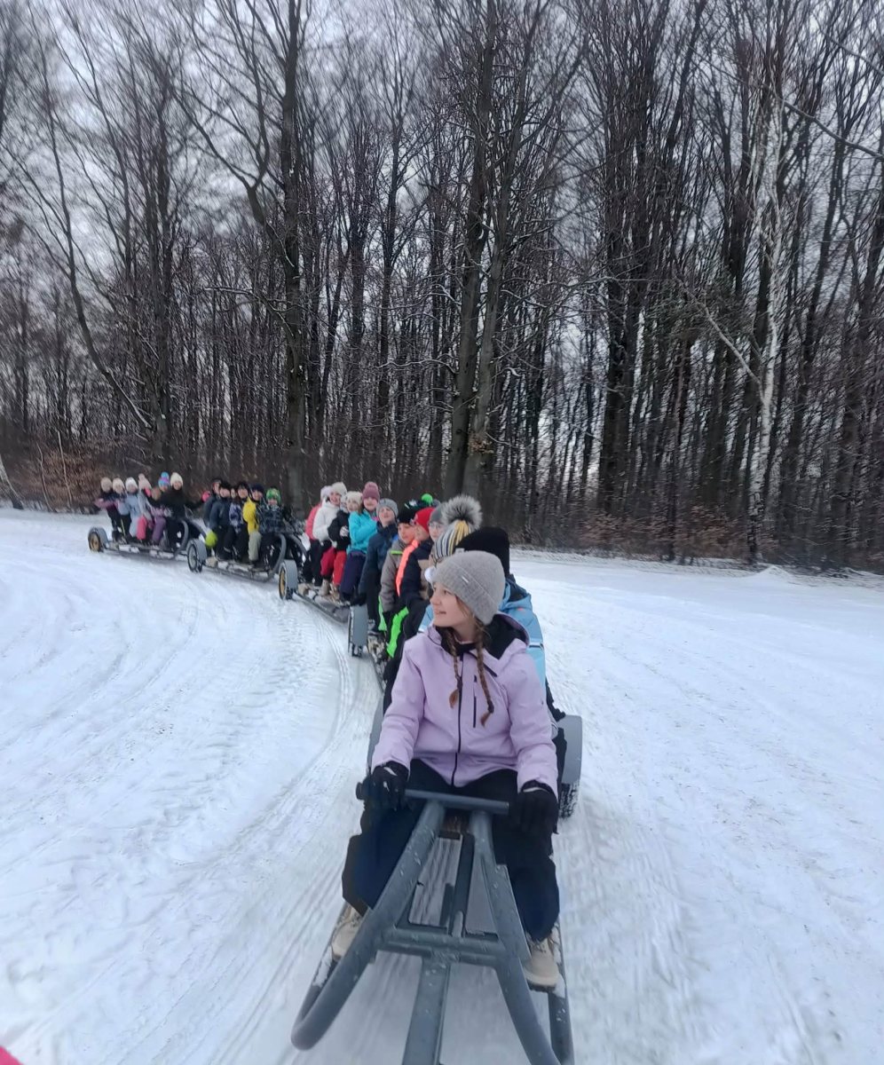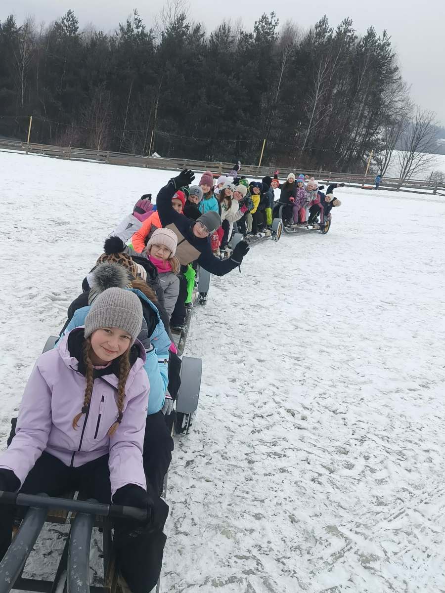 4 lutego klasy 5a i 5b wybrały się na kulig do Rancza Pstrągowa. Zimowa aura była idealna — biały puch, lekki mróz i radosna atmosfera sprzyjały wspólnej zabawie. Przejażdżka saniami dostarczyła uczniom wielu niezapomnianych wrażeń. Oprócz kuligu dzieci korzystały z toru pontonowego oraz karmiły zwierzęta w mini zoo. Nie zabrakło radosnych zabaw na śniegu. Na wszystkich czekała także pyszna pieczona kiełbasa z grilla oraz gorąca herbata, które pozwoliły się rozgrzać po aktywnie spędzonym czasie. Kolejny wspólny wypad na długo pozostanie w naszej pamięci. Zapraszamy do fotorelacji.