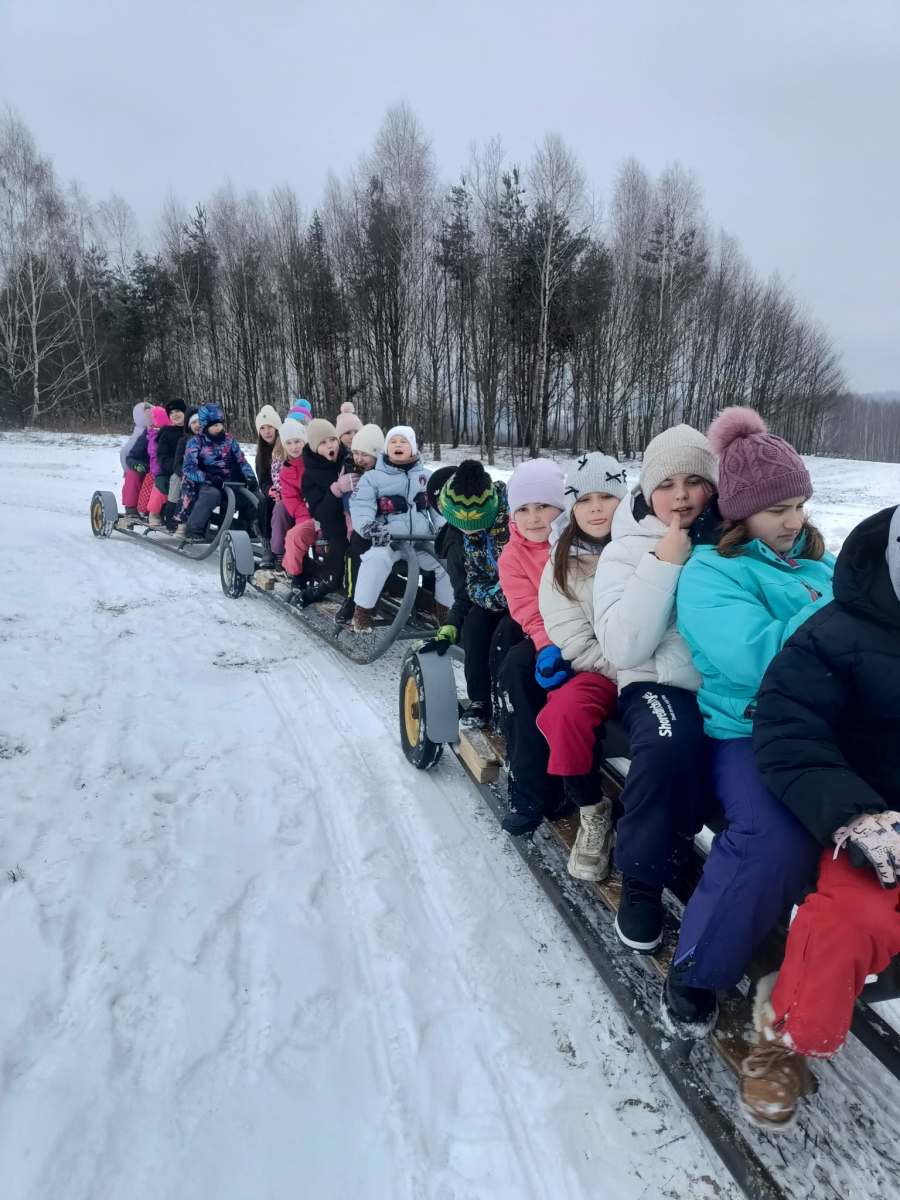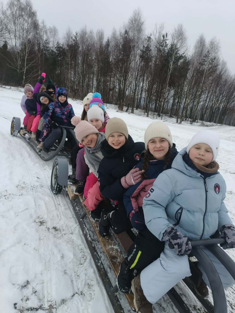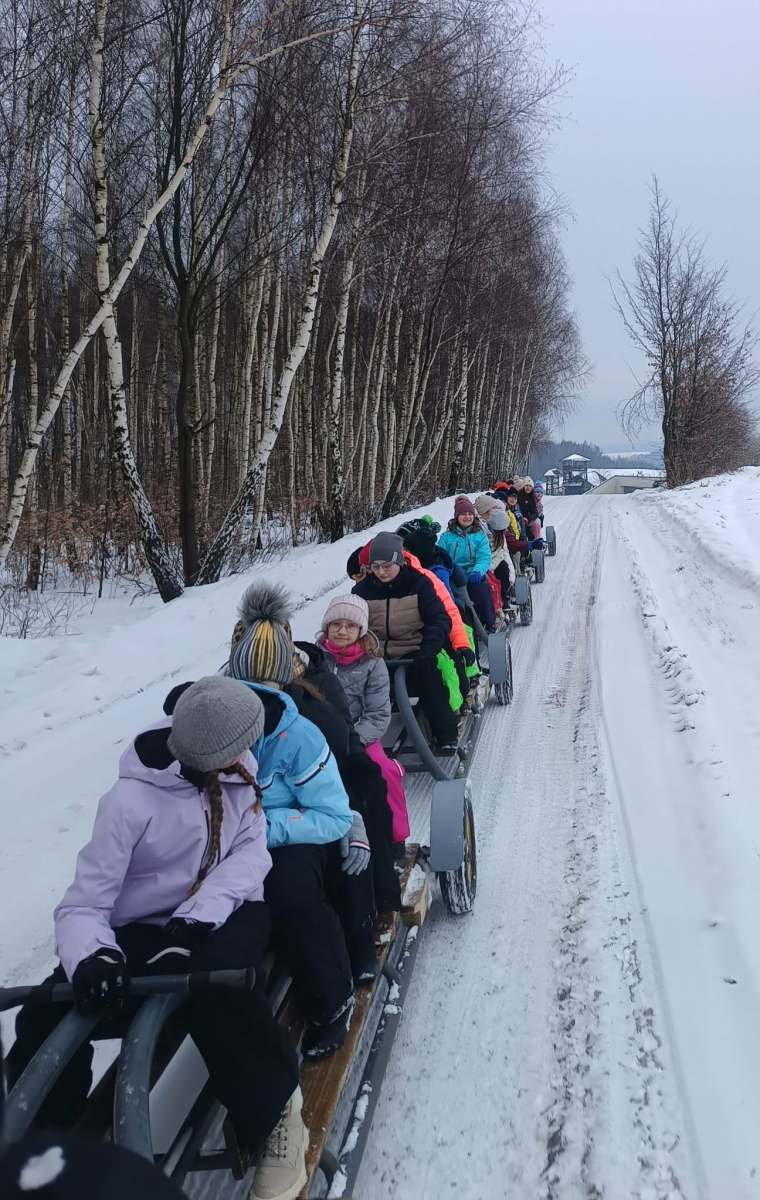 4 lutego klasy 5a i 5b wybrały się na kulig do Rancza Pstrągowa. Zimowa aura była idealna — biały puch, lekki mróz i radosna atmosfera sprzyjały wspólnej zabawie. Przejażdżka saniami dostarczyła uczniom wielu niezapomnianych wrażeń. Oprócz kuligu dzieci korzystały z toru pontonowego oraz karmiły zwierzęta w mini zoo. Nie zabrakło radosnych zabaw na śniegu. Na wszystkich czekała także pyszna pieczona kiełbasa z grilla oraz gorąca herbata, które pozwoliły się rozgrzać po aktywnie spędzonym czasie. Kolejny wspólny wypad na długo pozostanie w naszej pamięci. Zapraszamy do fotorelacji.