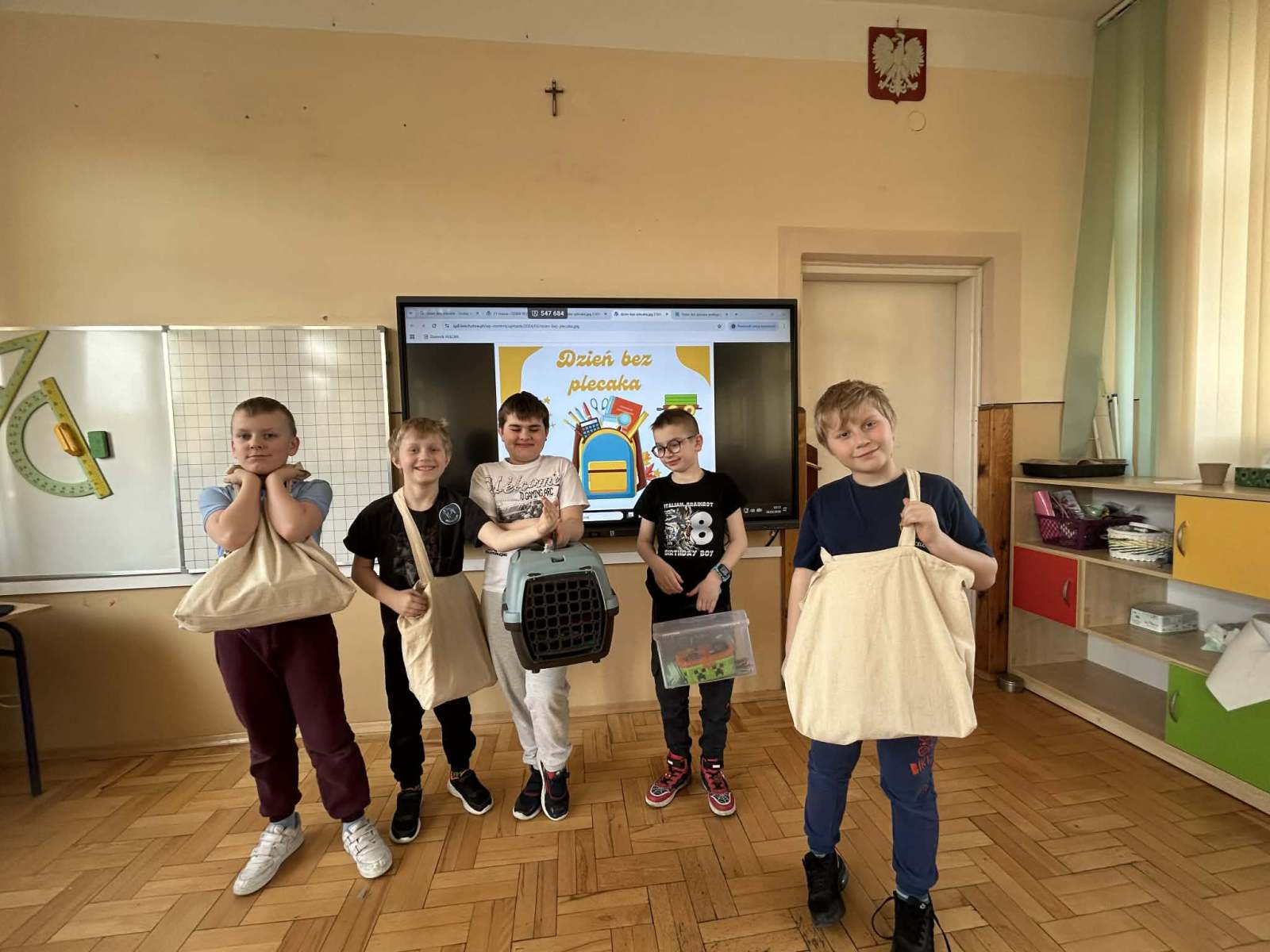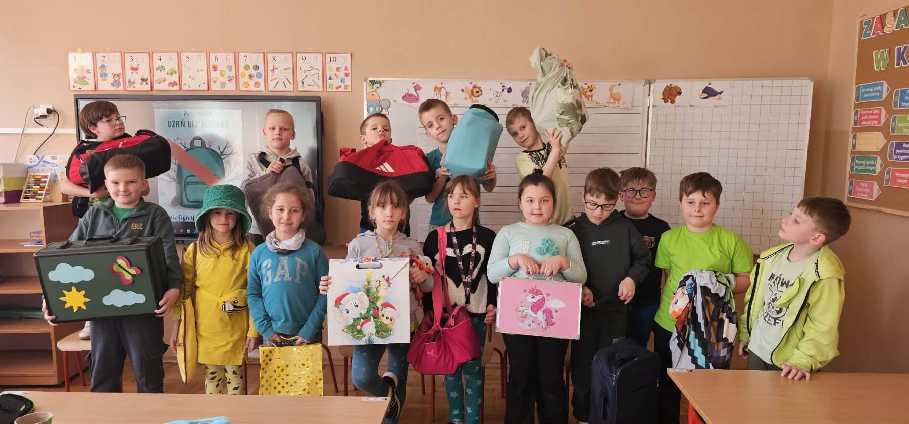 Z inicjatywy Samorządu Uczniowskiego pierwszy dzień wiosny w naszej szkole był naprawdę wyjątkowy! Z tej okazji uczniowie wzięli udział w kreatywnej akcji „Dzień bez plecaka”, która wywołała mnóstwo uśmiechu i pozytywnej energii. Zamiast tradycyjnych plecaków uczniowie przynieśli swoje książki i przybory w najbardziej nietypowy sposób. Na szkolnych korytarzach można było zobaczyć m.in. wózek sklepowy, walizki, pufę, doniczki, poduszki, koszyki, skrzynkę na narzędzia, krzesło, garnek, kartony, worek na śmieci, transporter dla zwierząt a nawet… szafkę! Pomysłowość uczniów nie miała granic! Akcja „bez plecaka” pokazała, jak wiele radości daje wspólna zabawa, kreatywność i odrobina szaleństwa w szkolnej codzienności. Dziękujemy wszystkim uczniom za zaangażowanie i świetne pomysły! Wiosnę witamy z uśmiechem!