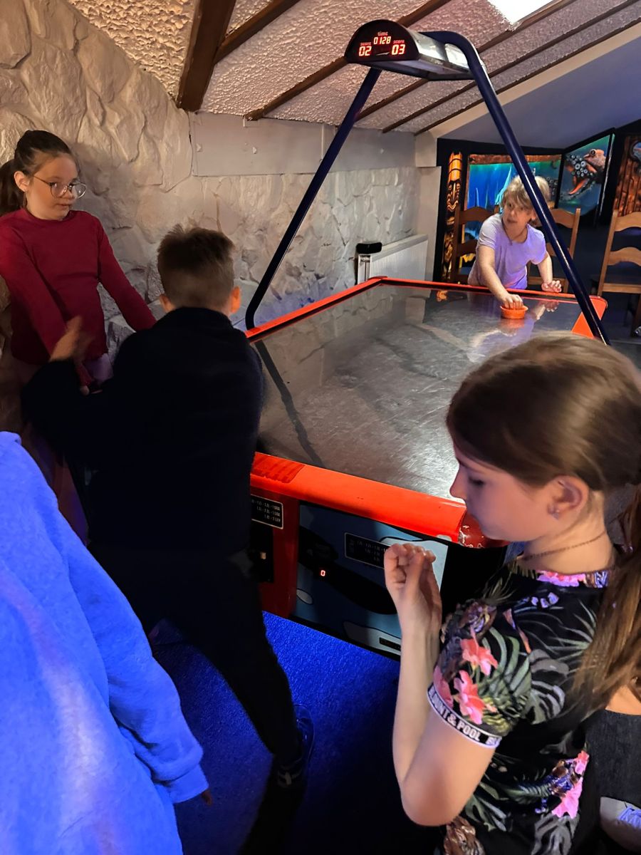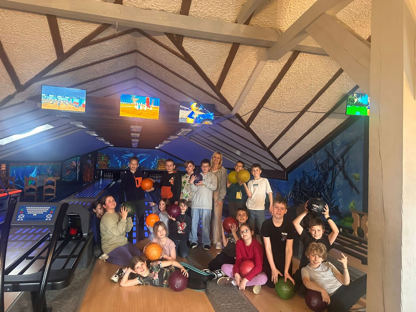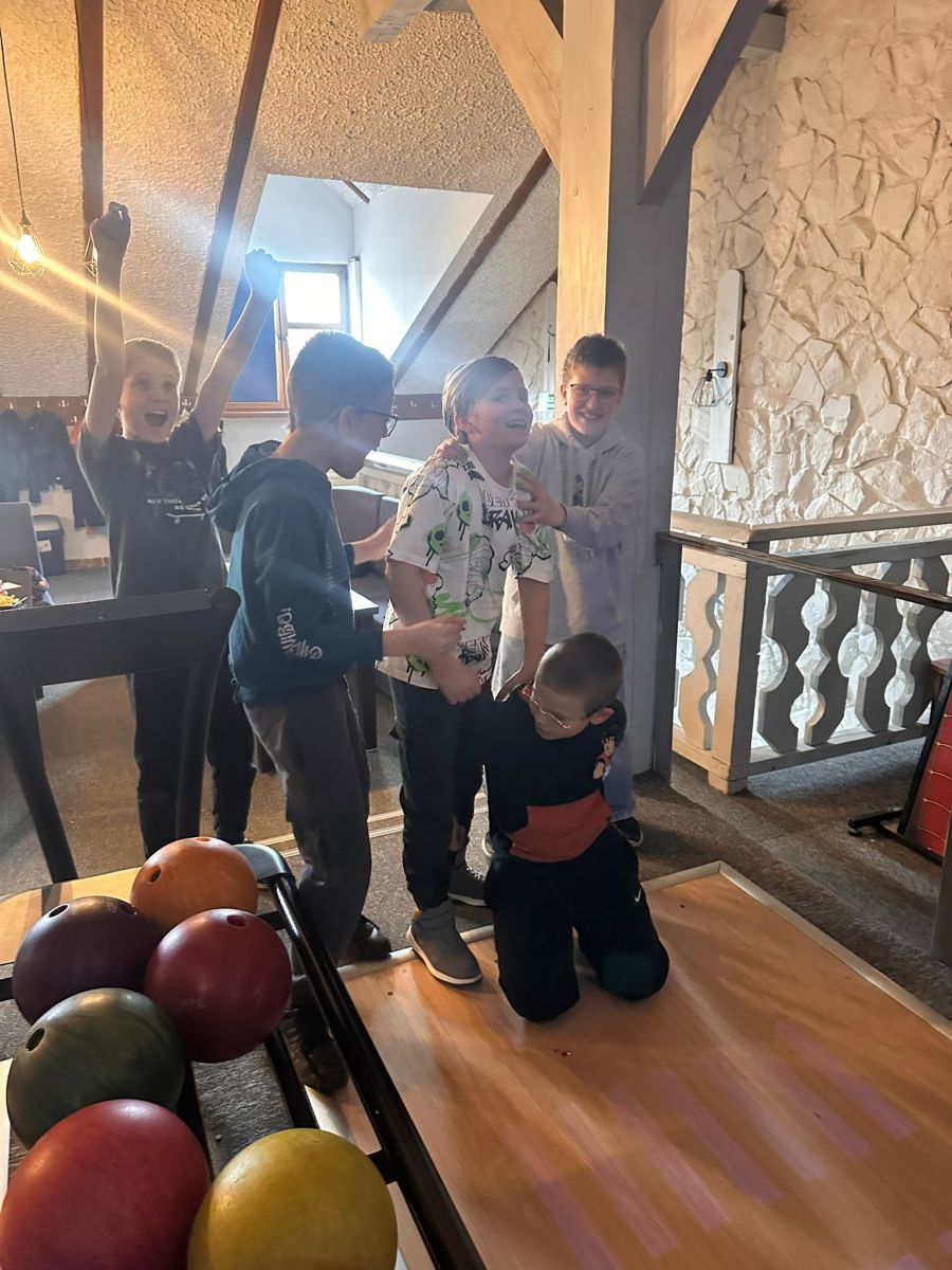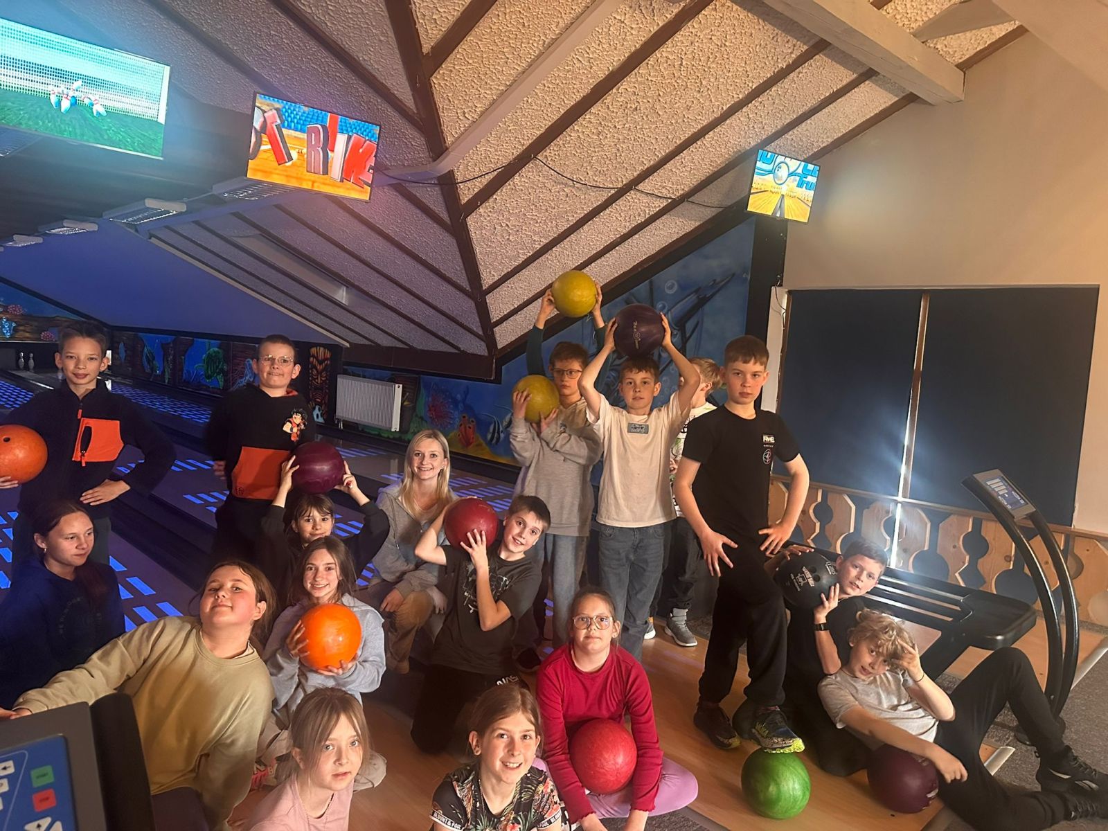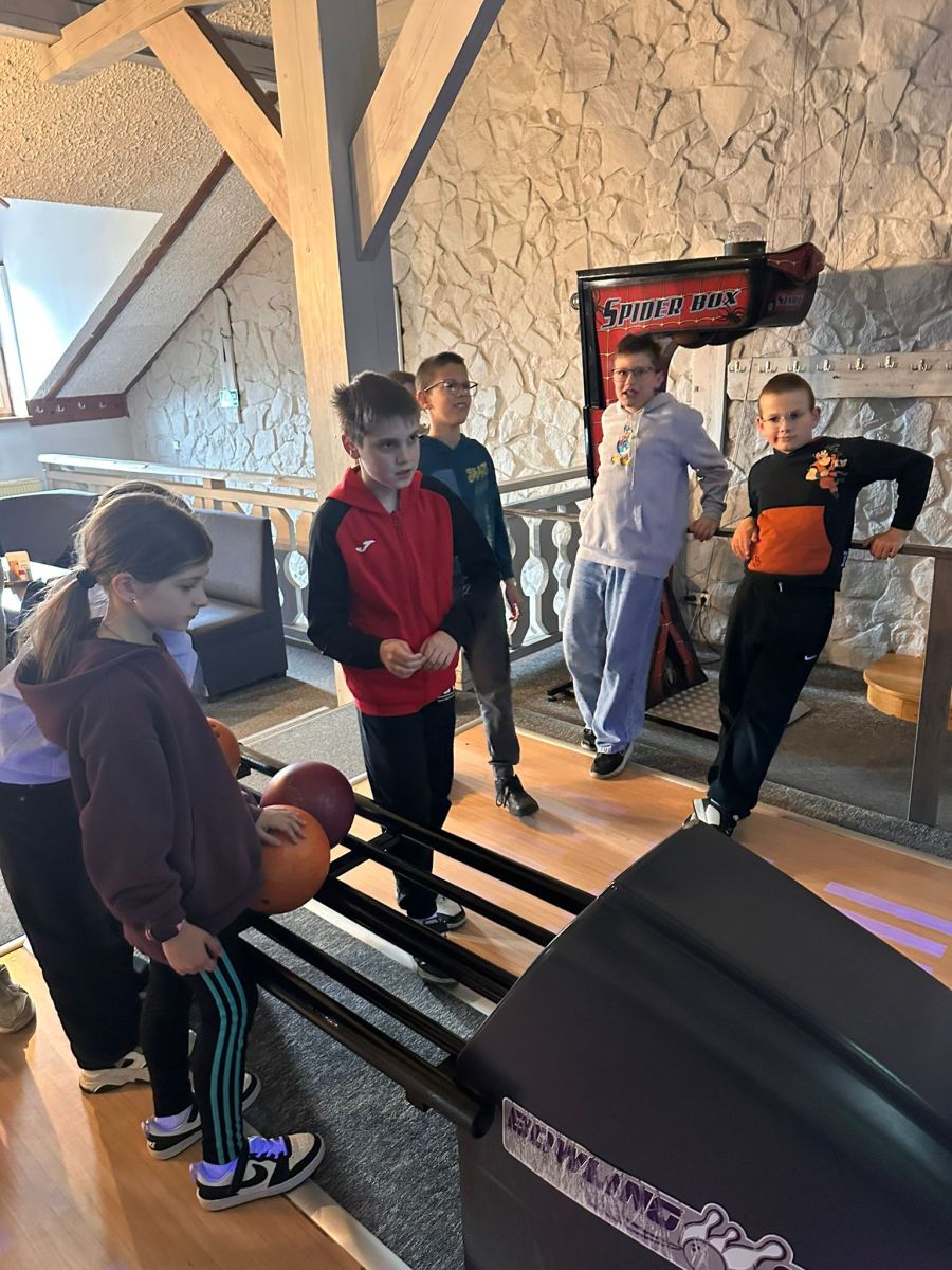 Uczniowie klasy 4a mieli okazję spędzić wyjątkowy dzień poza szkołą, udając się na wycieczkę do Karczmy Chłopskiej. Główną atrakcją były rozgrywki w kręgle, które dostarczyły wszystkim mnóstwo radości i zdrowej rywalizacji. Nie brakowało śmiechu, dopingu i świetnej zabawy!