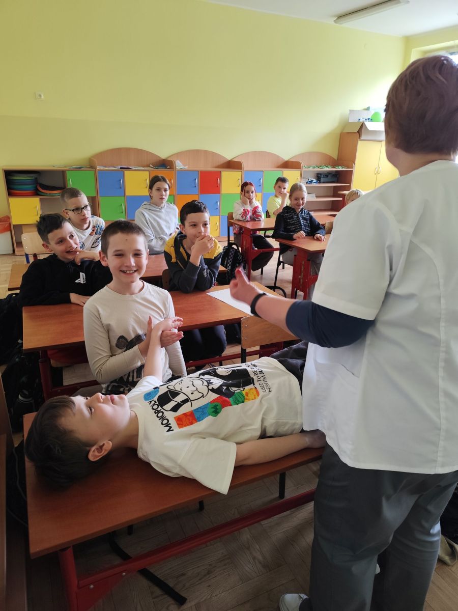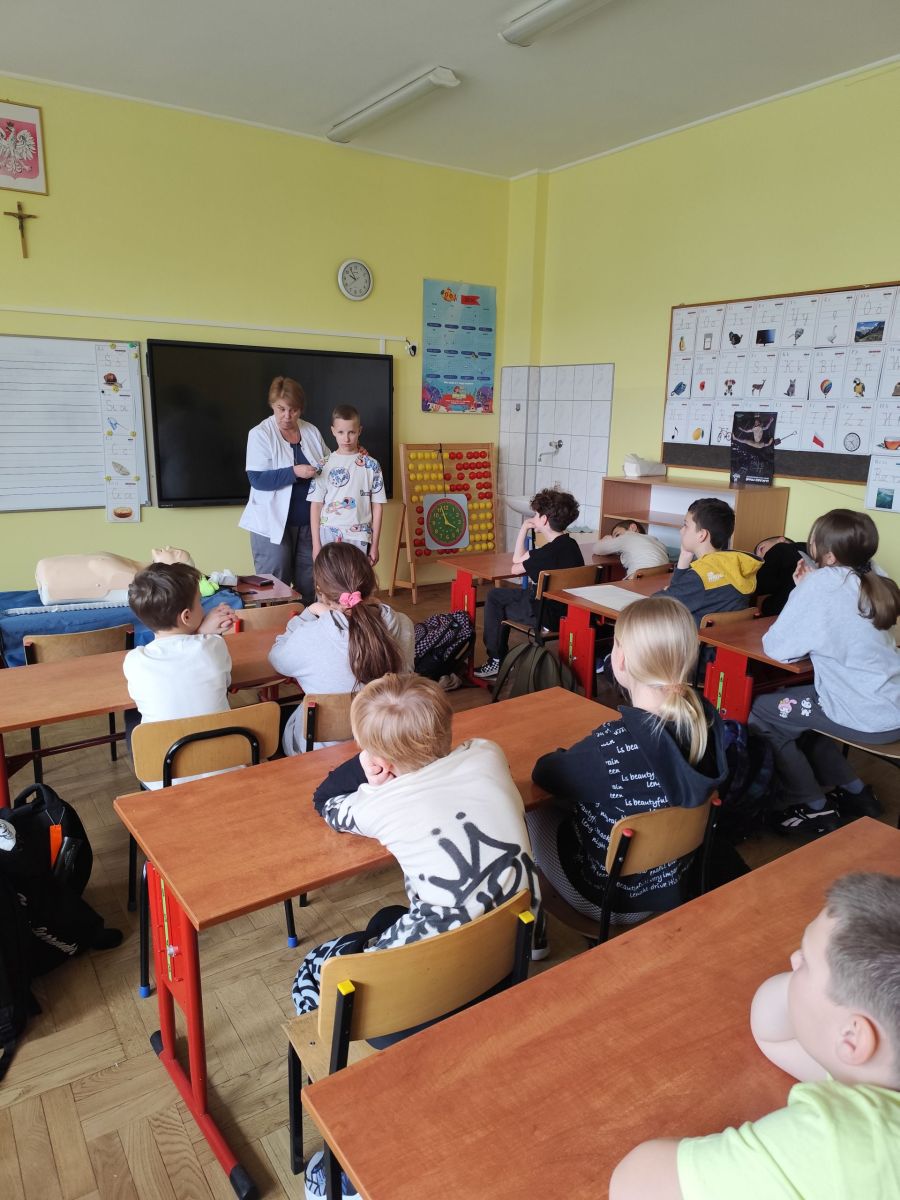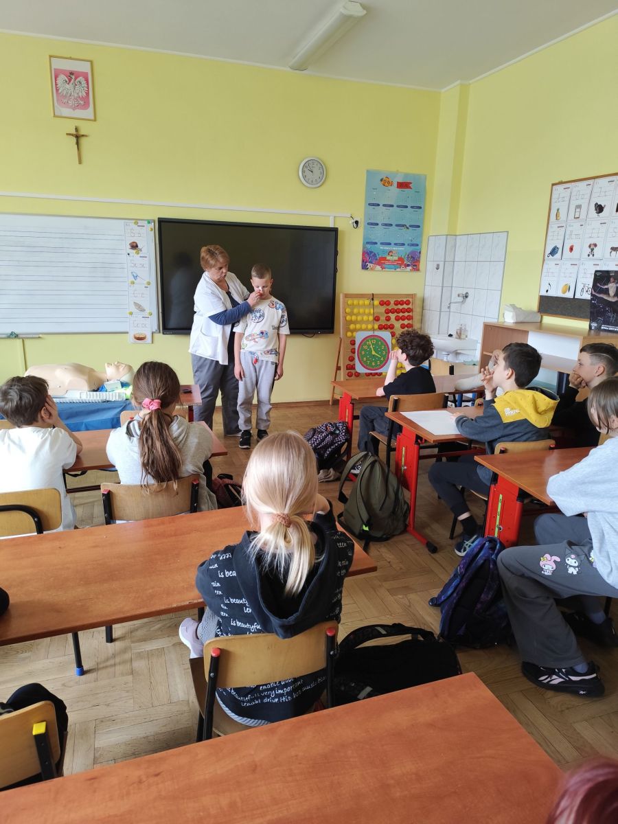 Zajęcia z panią higienistką z pierwszej pomocy w kl. 4b