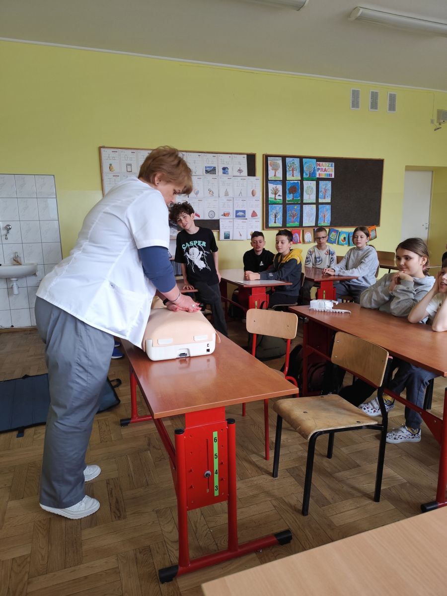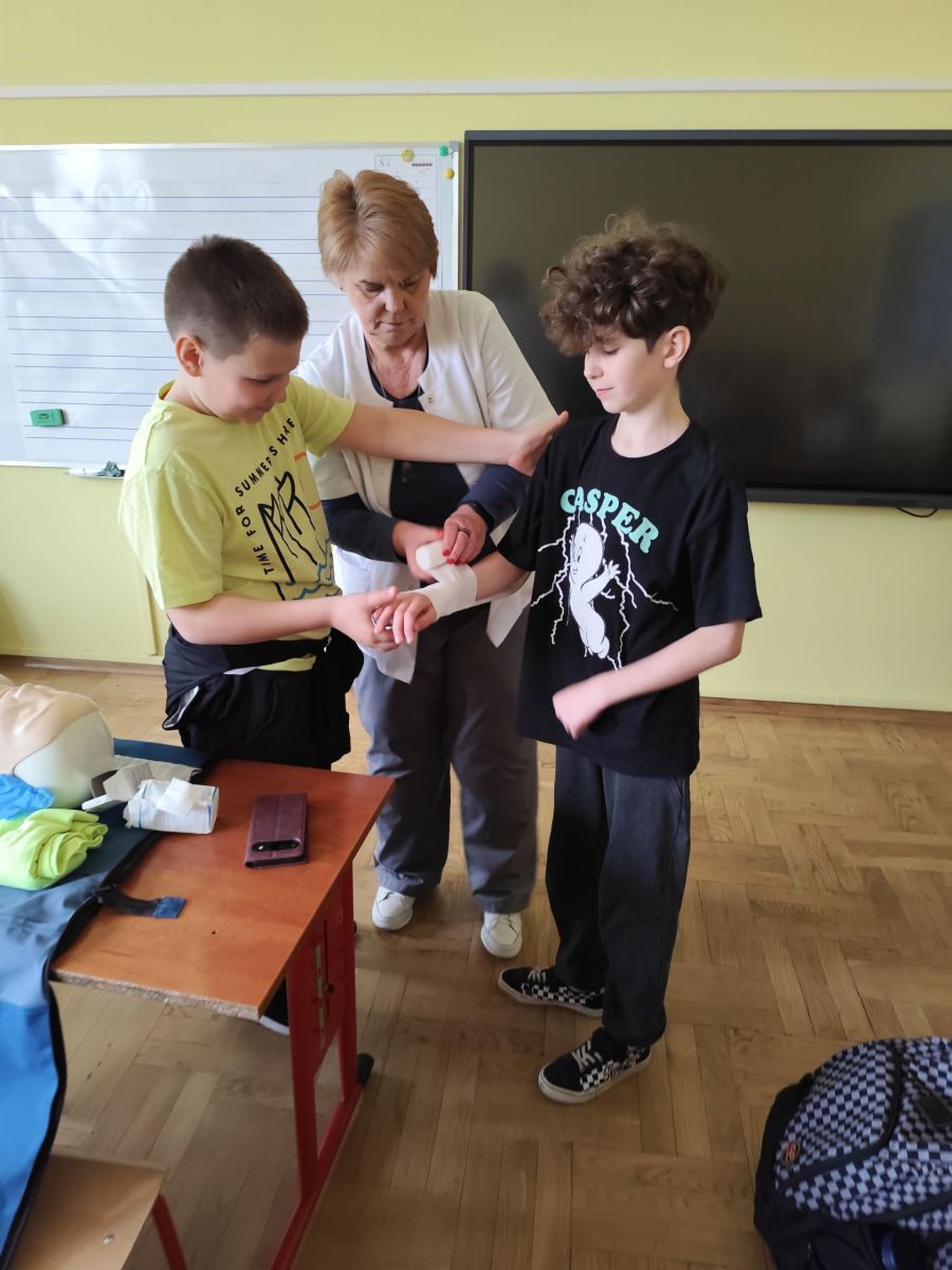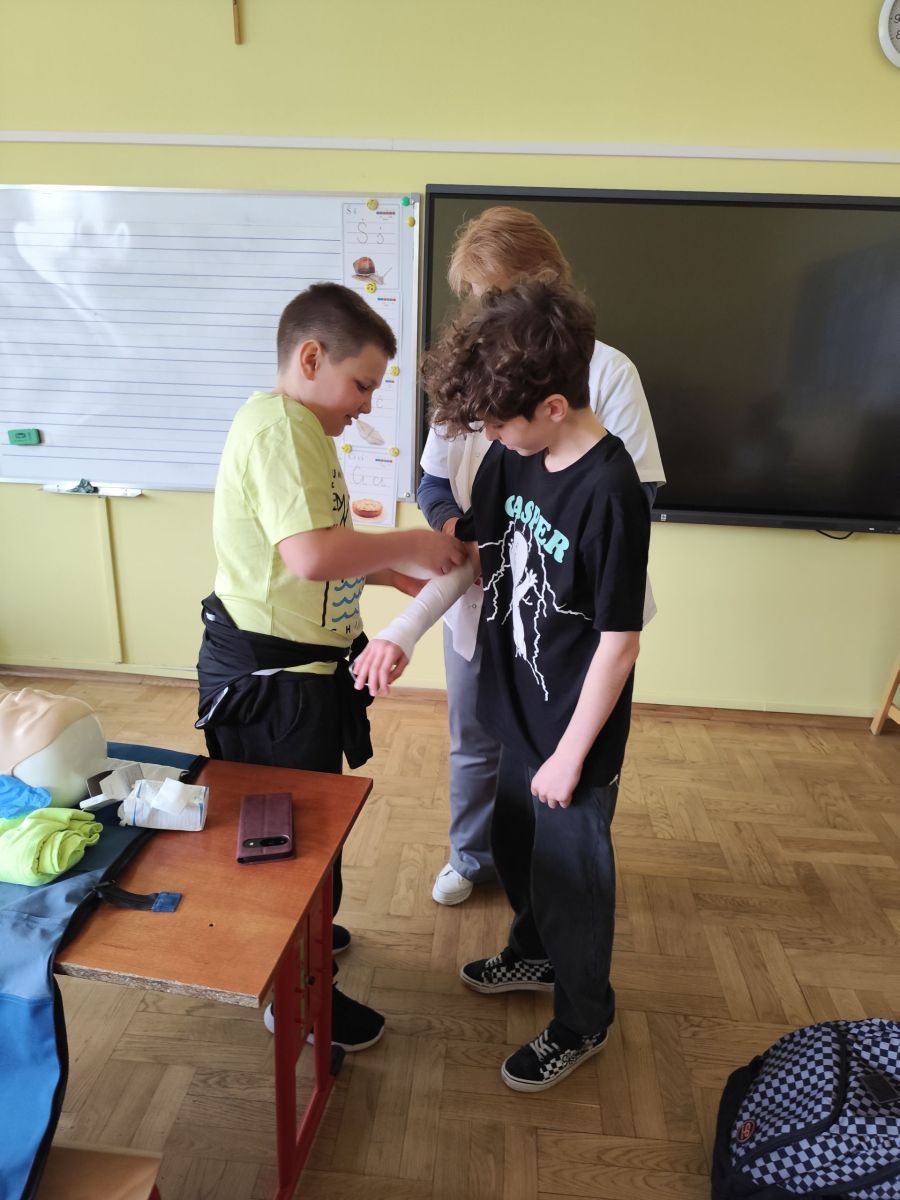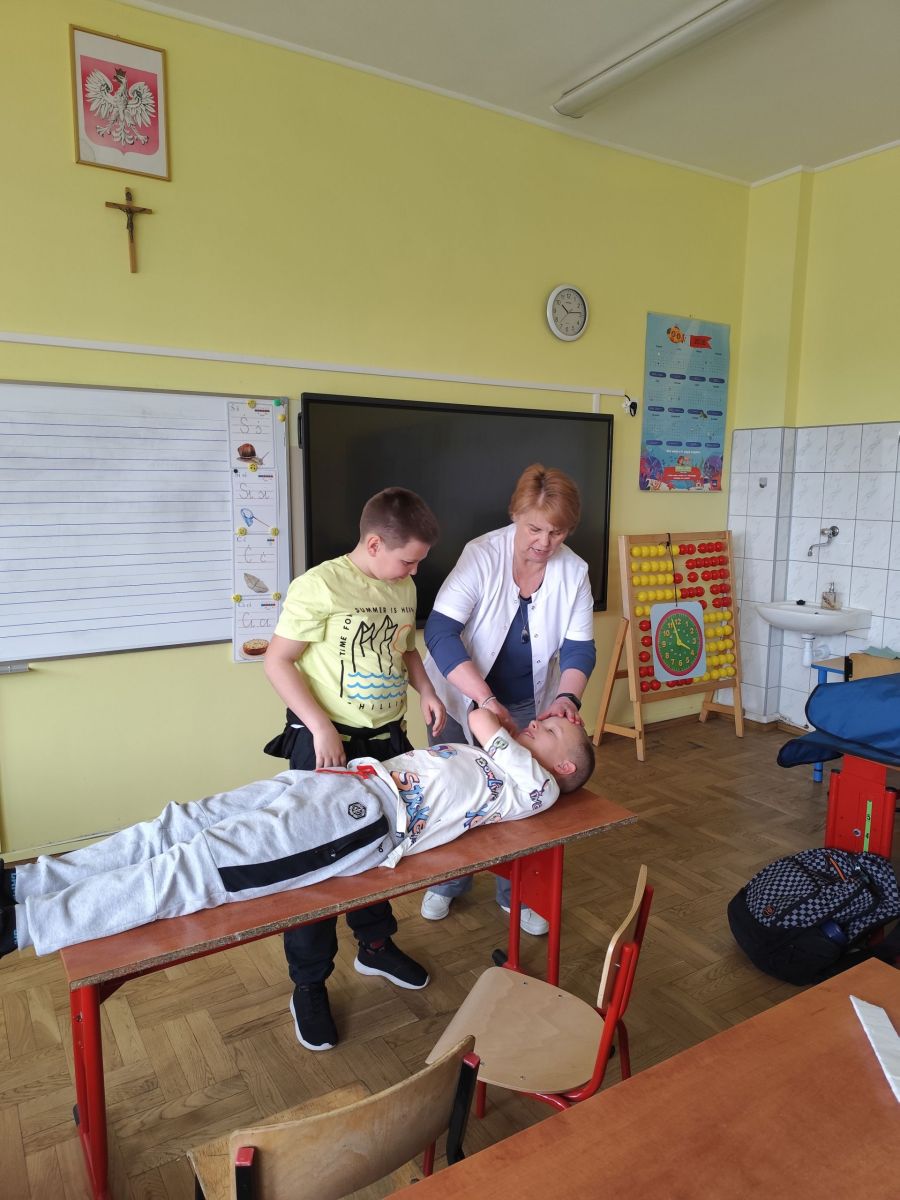 Zajęcia z panią higienistką z pierwszej pomocy w kl. 4b