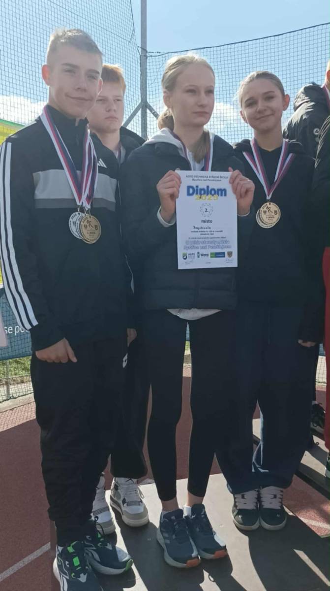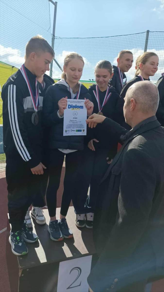 W tegorocznych zawodach wystąpiło 8 drużyn: ze Słowacji, z Czech, z Węgier i z Polski. Naszą szkołę reprezentowali: Anna Moroz (bieg 600 mi – 6 miejsce, skok wzwyż – 10 miejsce oraz sztafeta 4×150 metrów – 2 miejsce), Patryk Tobiasz (pchnięcie kulą – 4 miejsce, skok w dal – 9 miejsce, skok wzwyż – 4 miejsce), Rafał Cieślicki (pchnięcie kulą – 6 miejsce), Dawid Bojda (bieg na 800 mi – 8 miejsce). Nasi sportowcy dołożyli konkretną cegiełkę do zajęcia czwartego miejsce w generalnej klasyfikacji drużynowej. Wyjazd do Czech przyniósł nie tylko sportowe osiągnięcia, w czasie pobytu zawiązały się nowe znajomości, a uczniowie mieli okazję poznać miasteczko Bystrzycę. Wszystkim naszym zawodnikom gratulujemy i życzymy dalszych sukcesów.