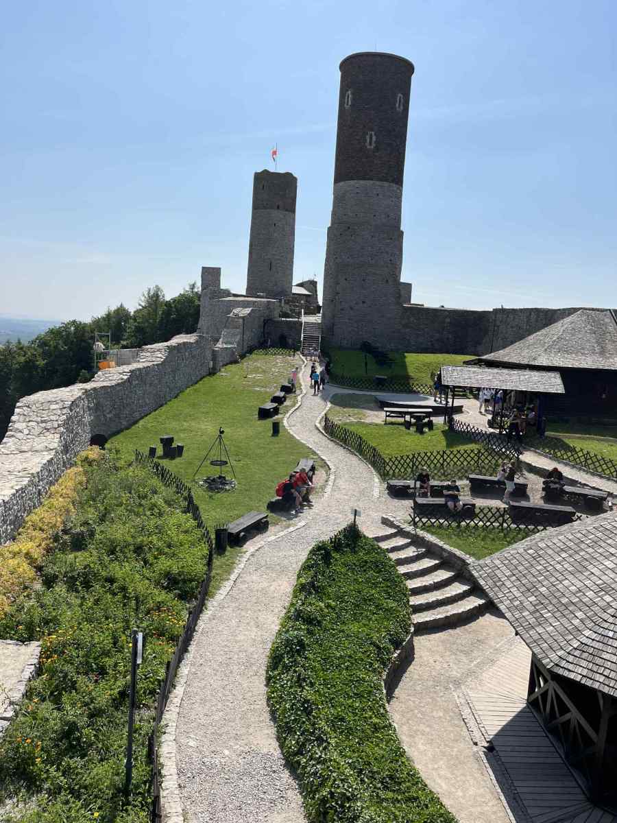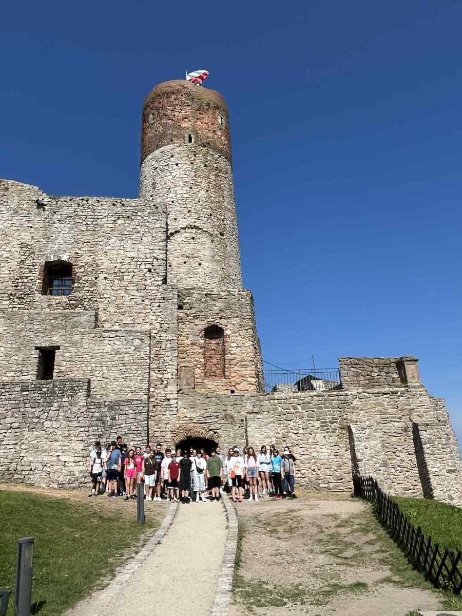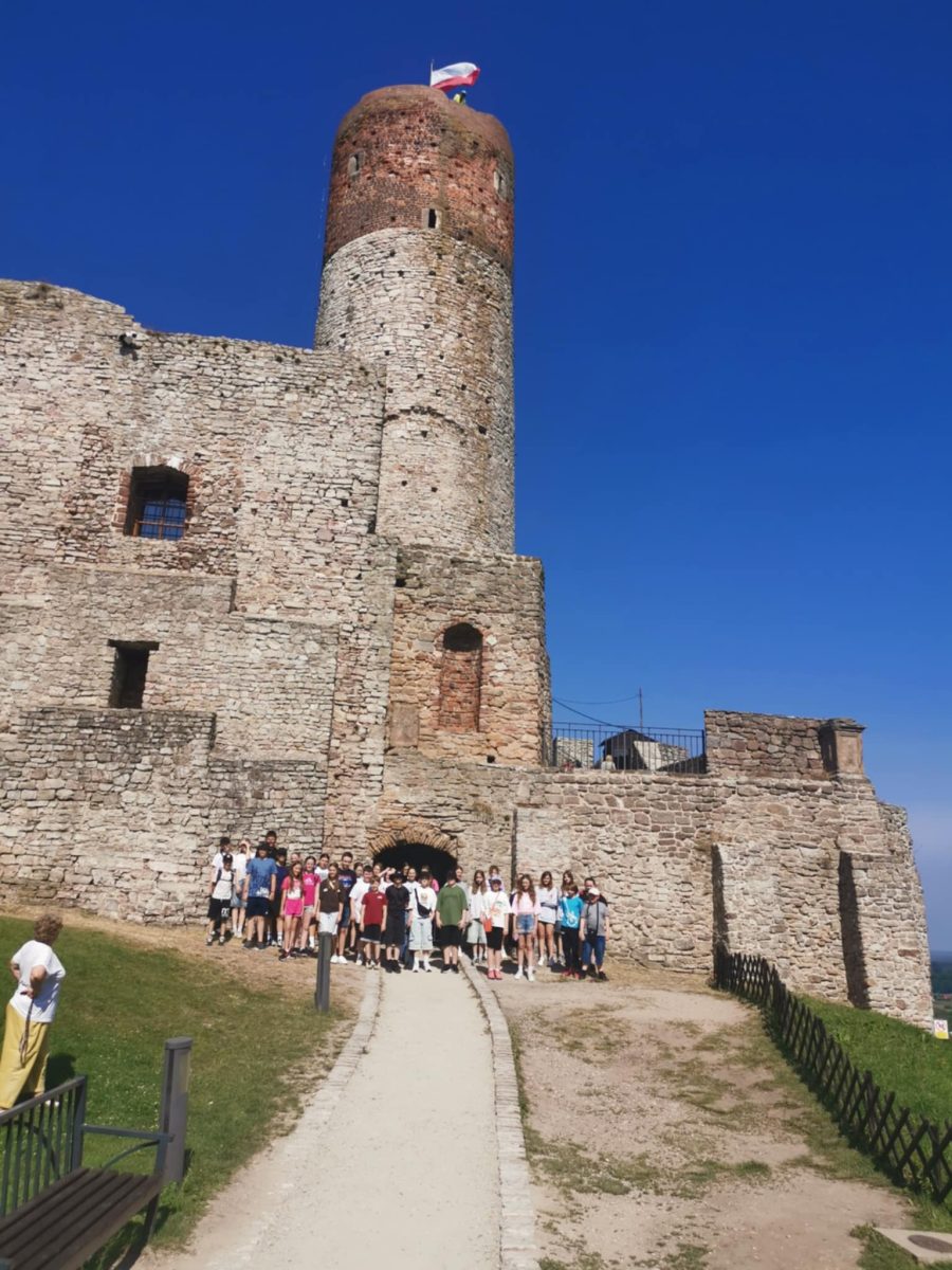 W środę, 18 czerwca 2025 roku, uczniowie klas 5a i 6a wybrali się na pełną wrażeń wycieczkę w Góry Świętokrzyskie. Program był bardzo intensywny i ciekawy. Pierwszym punktem było zwiedzanie malowniczych ruin zamku w Chęcinach, gdzie dzieci mogły poczuć klimat średniowiecza. Następnie odwiedziliśmy nowoczesne Centrum Nauki Leonardo da Vinci, które zachwyciło nas interaktywnymi wystawami i eksperymentami.