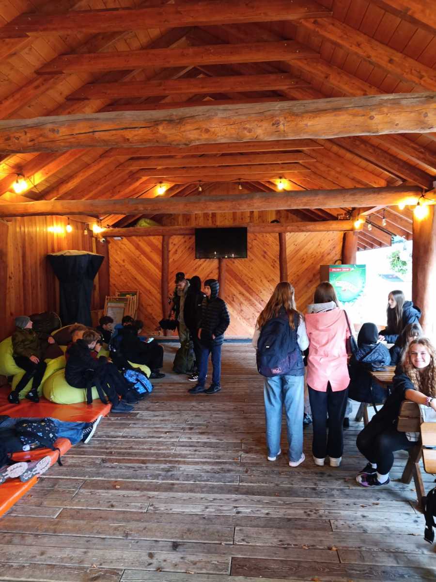 Zwiedzanie rozpoczęliśmy od Słotwin, gdzie wyszliśmy na wieżę widokową. Otaczające nas lasy, góry i kolorowe drzewa tworzyły prawdziwie jesienny krajobraz. Mimo, że chwilami padało, udało nam się przejść ścieżkę w koronach drzew i zrobić wiele pamiątkowych zdjęć.