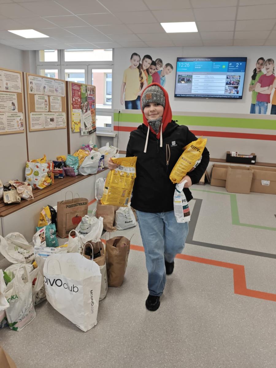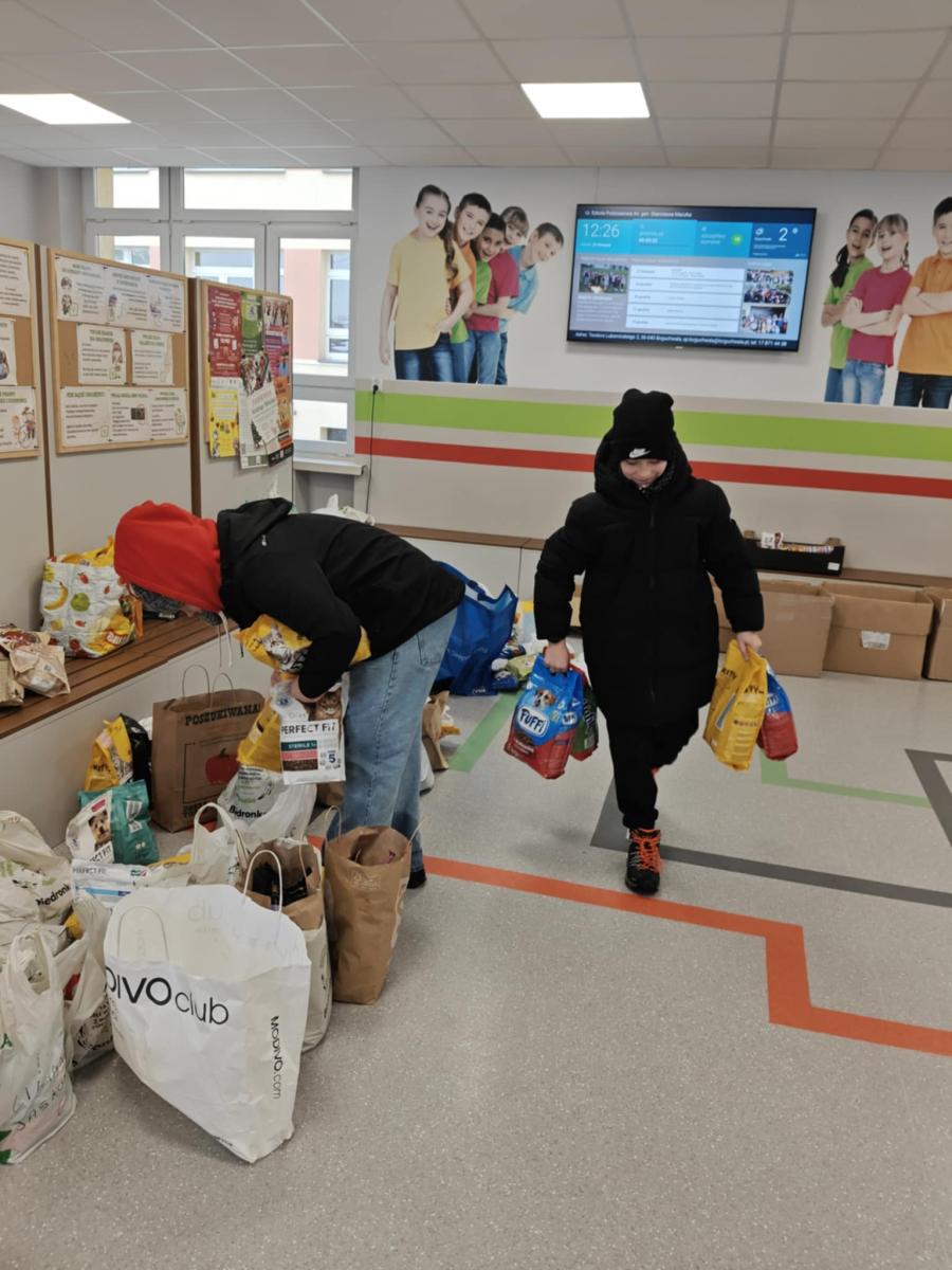 Samorząd Uczniowski z przyjemnością informuje, że zakończyliśmy tegoroczną przedświąteczną zbiórkę karmy dla podopiecznych schroniska „Kundelek”. Dzięki ogromnemu zaangażowaniu uczniów, rodziców i nauczycieli zebraliśmy znaczną ilość karmy suchej i mokrej, a także przysmaków i zabawek dla psów i kotów. Przedstawiciele schroniska przekazali serdeczne podziękowania dla całej społeczności szkolnej i podkreślili, że jest to rekordowa ilość karmy od jednej szkoły. To ogromne wyróżnienie i dowód na to, jak wielkie serce ma nasza społeczność. Dziękujemy wszystkim, którzy włączyli się w akcję!