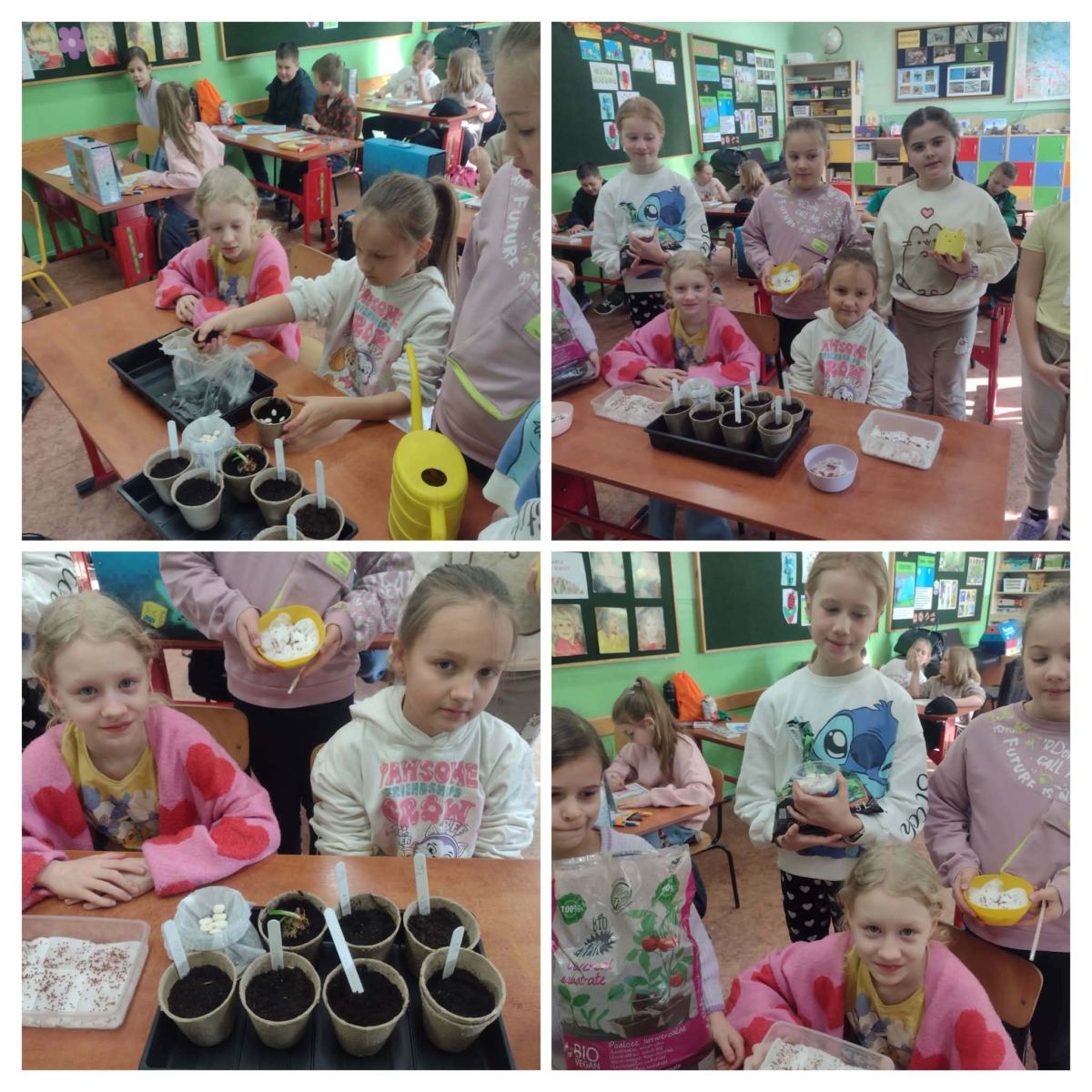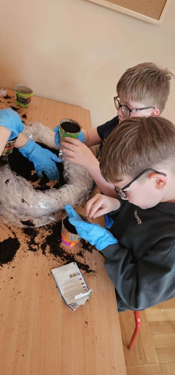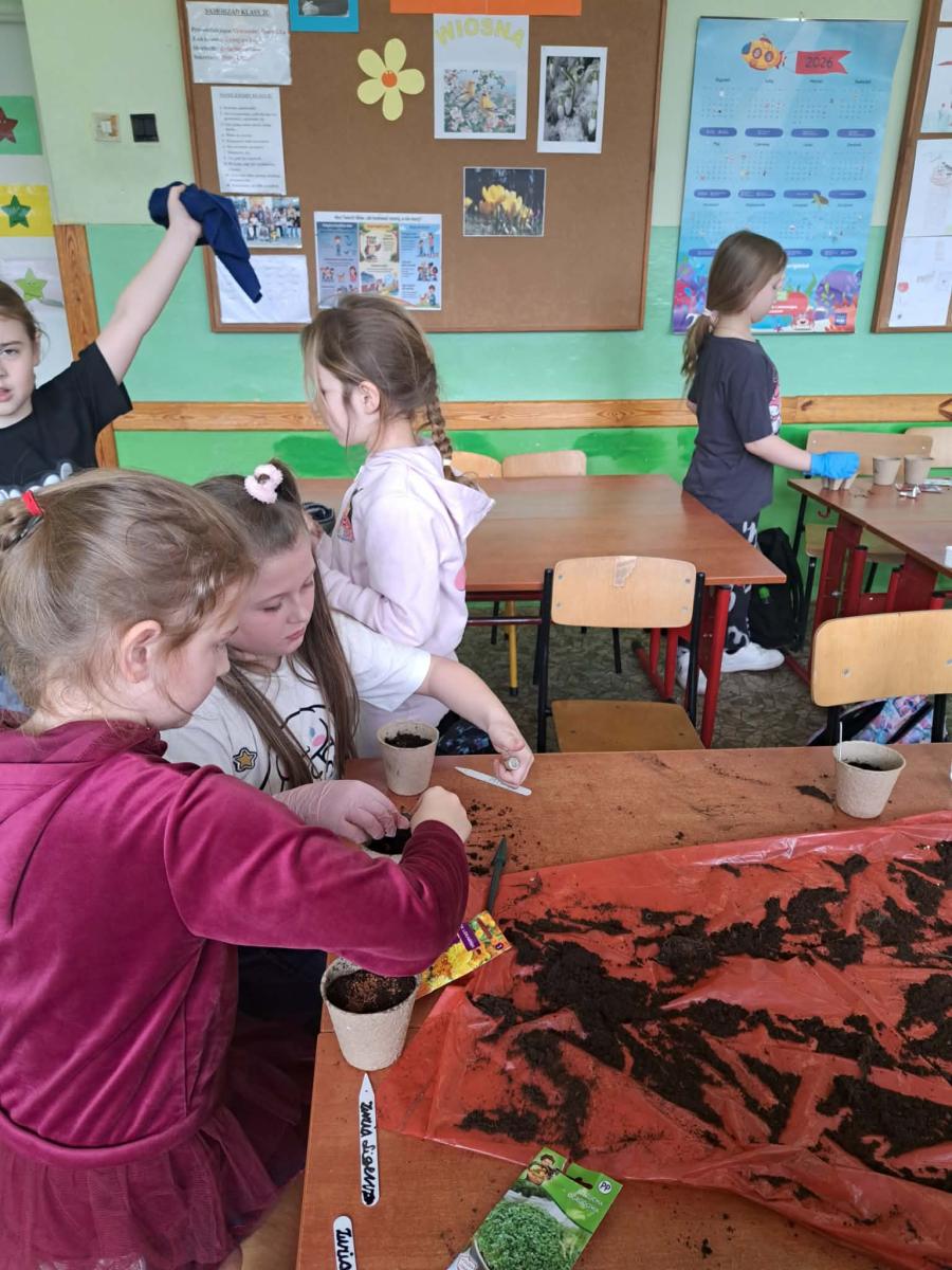 Podczas zajęć uczniowie samodzielnie sadzili rośliny, zakładając klasowe miniogródki. Każdy uczeń będzie miał możliwość obserwowania wzrostu swoich sadzonek oraz uczenia się systematycznej pielęgnacji roślin.