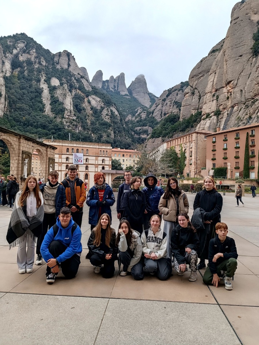 W dniu 10.11.2024 grupa 14 uczniów z 3 nauczycielkami – p. Agatą Rąpałą, p. Anną Chruściel i p. Moniką Mlaś-Bieniasz, wyjechała do Esparreguery w Hiszpanii, gdzie mieści się partnerska szkoła Institut El Castell.