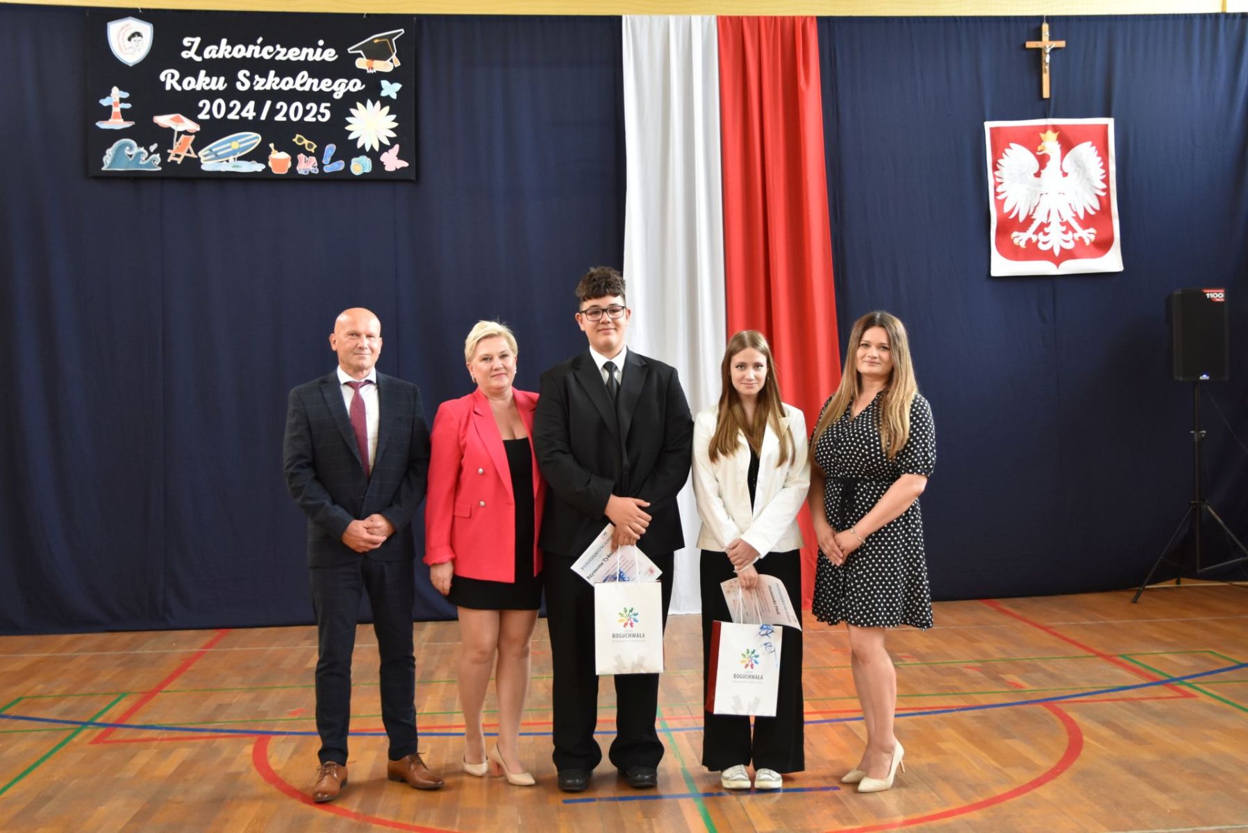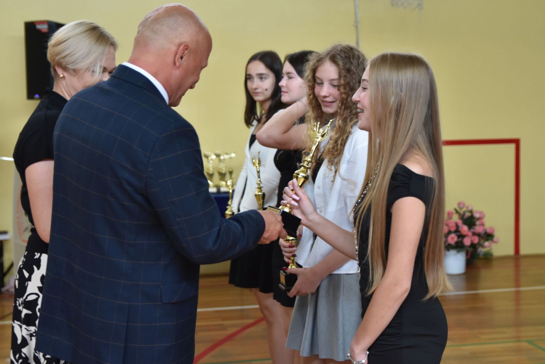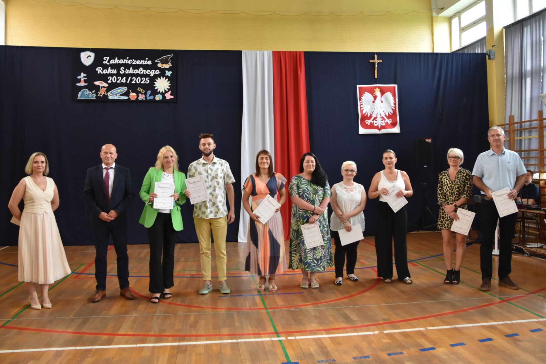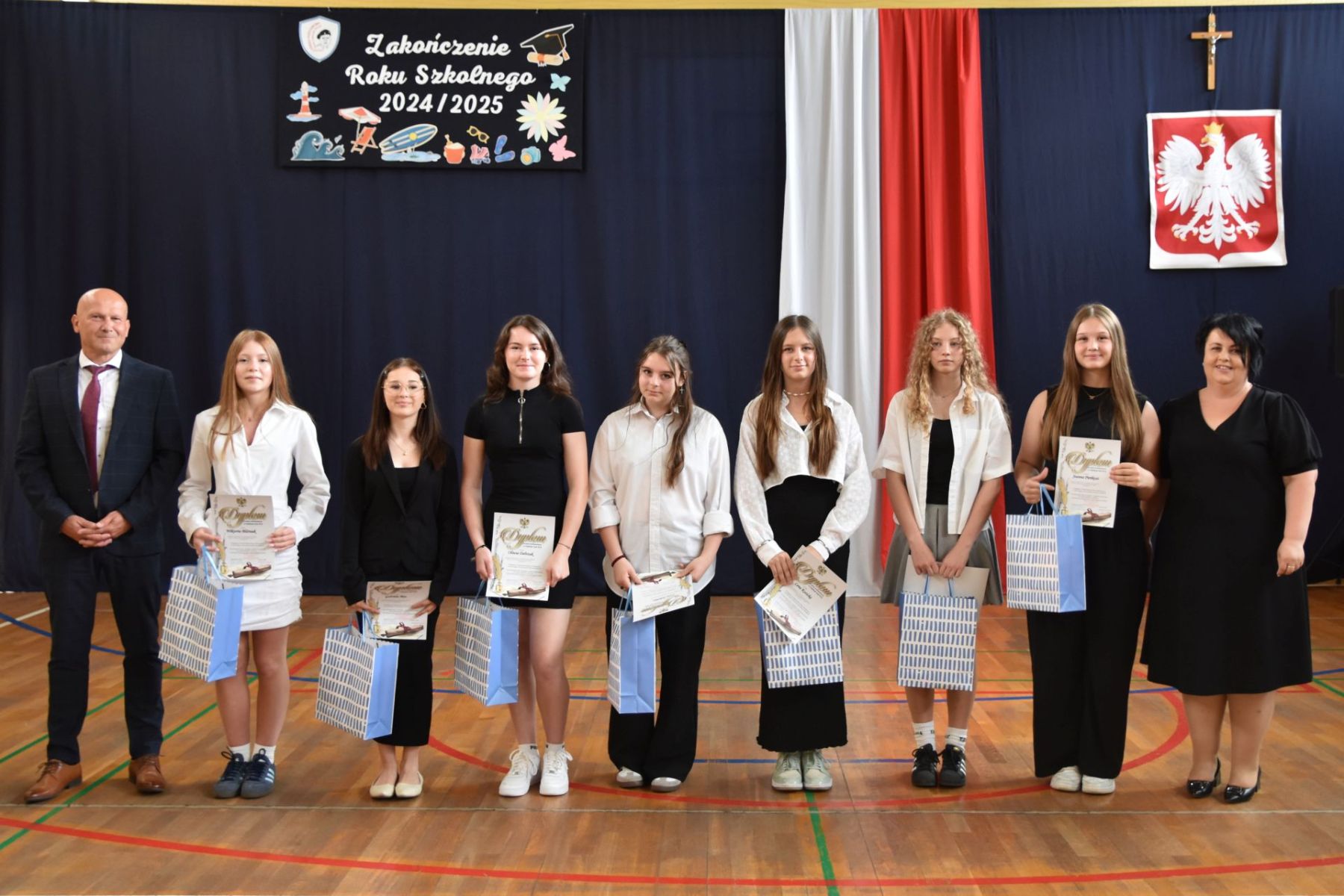 Kolejnym punktem było wręczenie dyplomów ukończenia szkoły podstawowej i nagród dla wyróżniających się uczniów – za osiągnięcia naukowe, sportowe i zaangażowanie w życie szkoły oraz podziękowań Rodzicom za czynny udział w pracach na rzecz społeczności szkolnej.