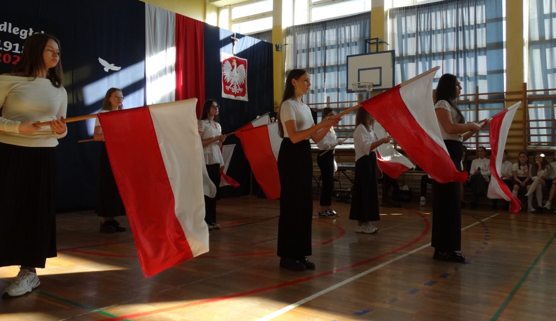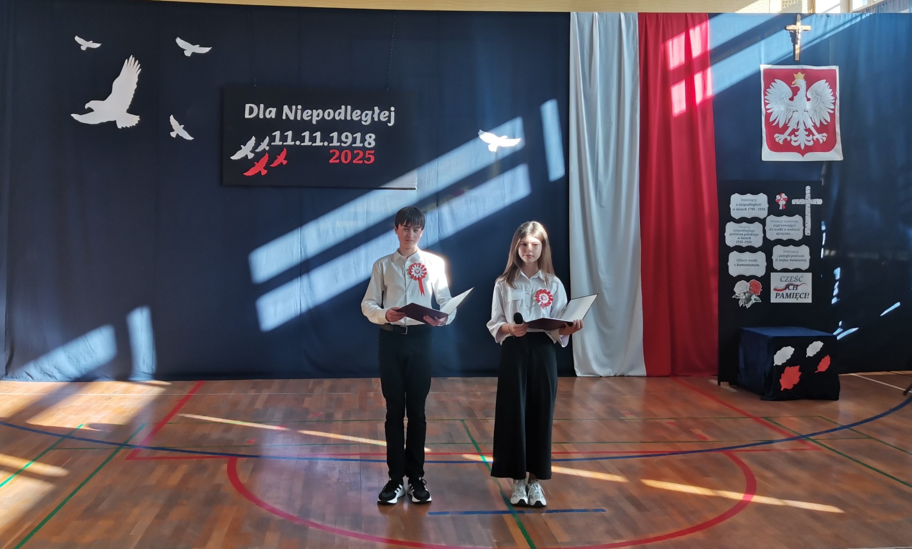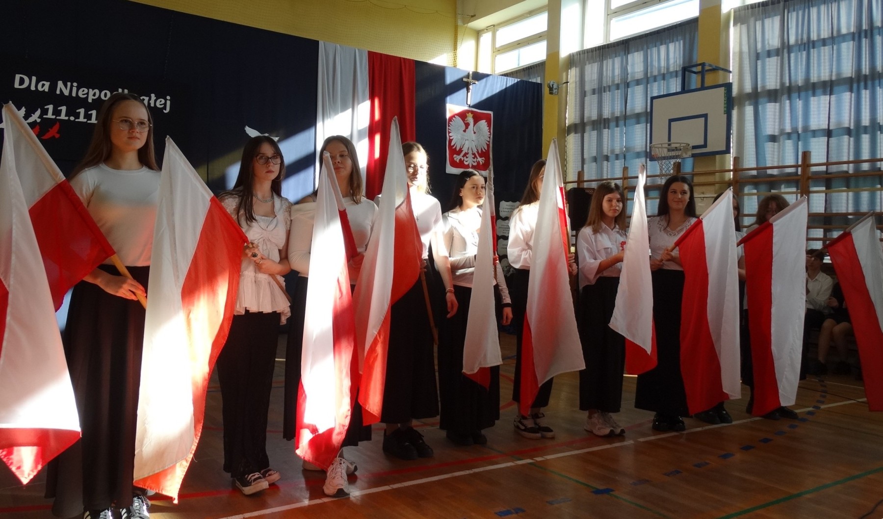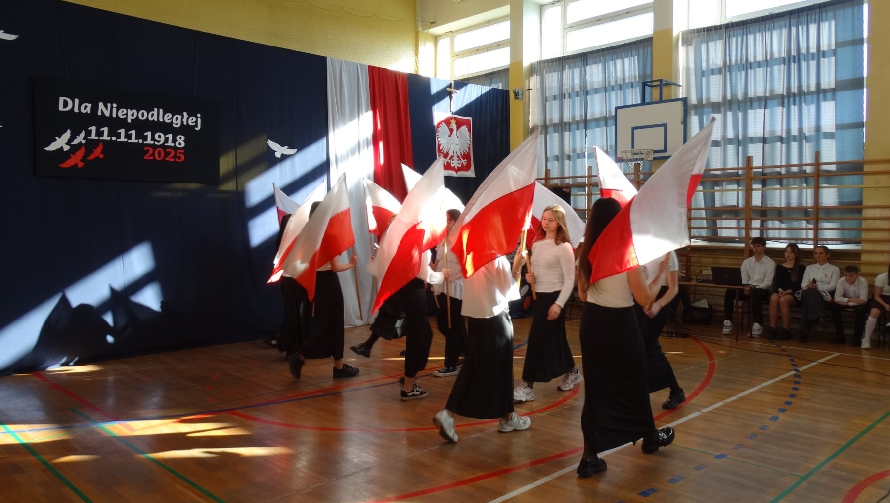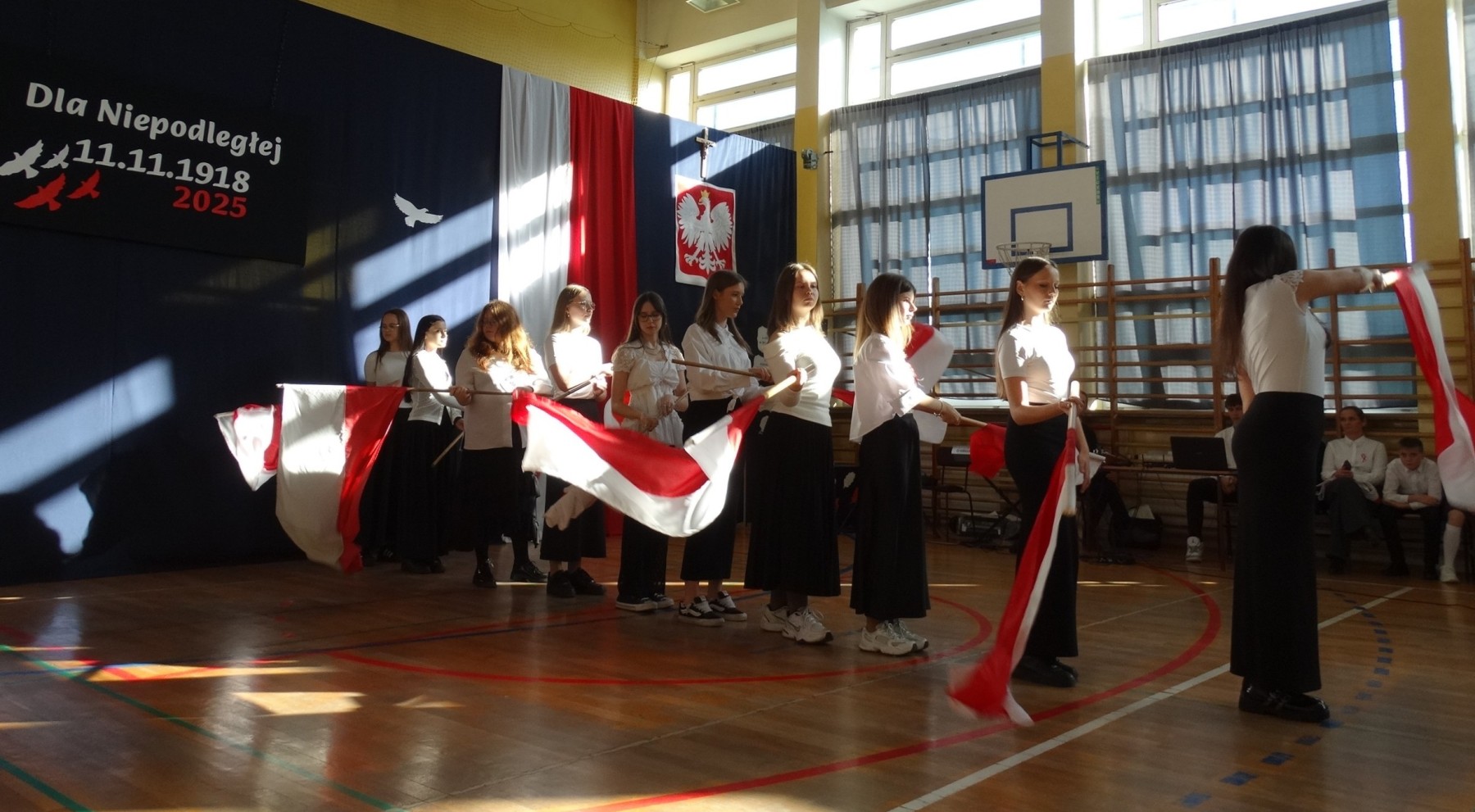 7 listopada 2025 r. r. w naszej szkole odbyła się uroczysta akademia z tej okazji. W swym wystąpieniu Dyrektor szkoły, mgr Artur Bilski przypomniał, że wolność raz zdobyta i niepodległość nie są dane na zawsze, lecz należy wciąż dbać o te wartości i stale je pielęgnować. Część artystyczna zawierała różnorodne formy artystyczne: recytacje, śpiew i taniec. Widowisko nawiązywało do historii, ale też zachęcało do refleksji nad tym, czym dziś jest wolność. Umożliwiało także zaangażowanie wielu uczniów. Akademię przygotowała p. Lidia Lesiak we współpracy z p. Izabellą Rejment (zuchy), p. Grzegorzem Ziobro (muzyka), p. Renatą Luderą (taniec z flagami) i p. Anną Chruściel (scenografia).