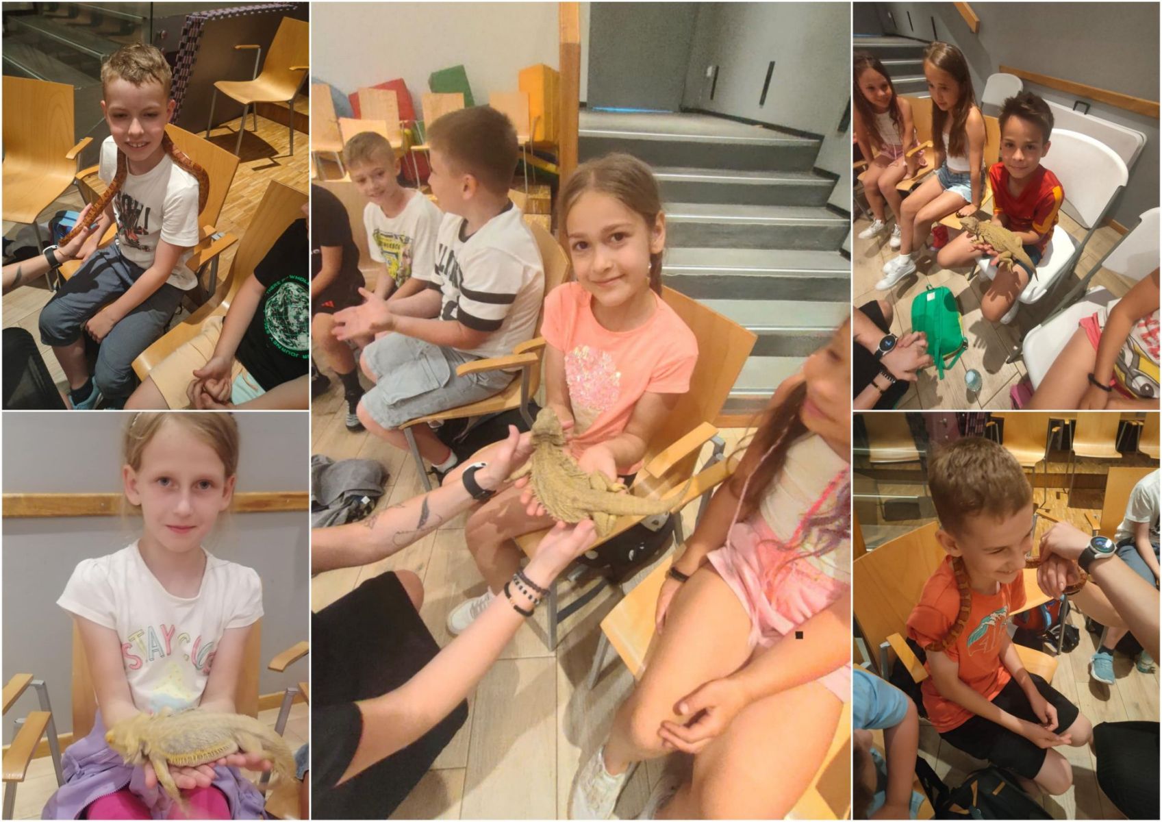 23 czerwca klasy II wybrały się na wycieczkę do Zoomu Natury w Janowie Lubelskim. Program edukacyjny obejmował warsztaty z żywymi zwierzętami, w trakcie których dzieci mogły z bliska zobaczyć i dotknąć egzotyczne gady – największe emocje wzbudziły agawa i boa, które można było potrzymać na rękach. Uczniowie uczestniczyli również w lekcjach przyrodniczych w laboratoriach tematycznych, poznając ryby, owady oraz inne egzotyczne zwierzęta. Nie zabrakło też czasu na zabawę w Parku Kreatywnym, gdzie czekały interaktywne stanowiska i przestrzeń do aktywności ruchowej. Po wspólnej zabawie dzieci zjadły pyszną pizzę, a wyjazd zakończył się seansem w kinie 3D. Wycieczka dostarczyła mnóstwo wrażeń i radości – szczególnie spotkanie z żywymi gadami na długo pozostanie w pamięci uczestników.